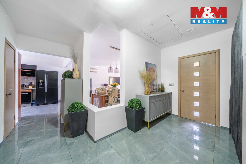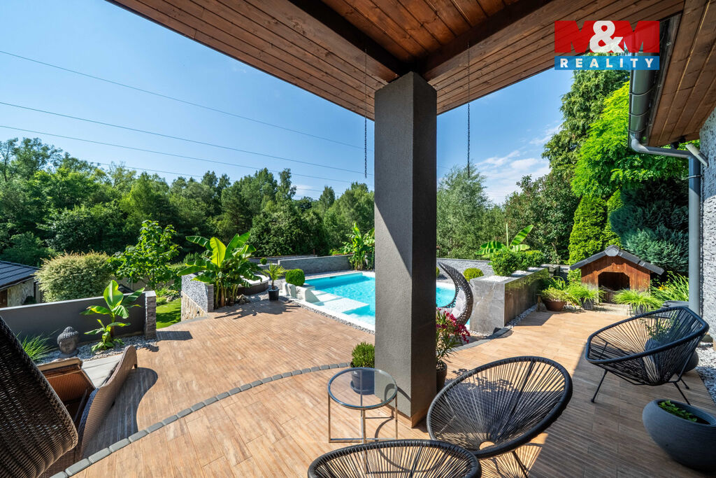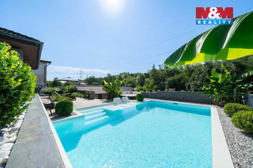 Nabízíme k prodeji výjimečný rodinný dům o dispozici 3 kk, který vyniká vysokým standardem provedení a promyšleným řešením pro komfortní bydlení. Nachází se v klidné části, kde máte absolutní klid a soukromí, zároveň však veškerou občanskou vybavenost doslova na dosah. V domě je prostorný obývací pokoj s krbem propojený s kuchyní a jídelní částí, ložnice, pokoj, velká koupelna s vanou a sprchovým koutem, samostatné WC. Přímý vstup z domu na velkou terasu nabízí krásný výhled do okrasné zahrady a okolí, je ideální pro letní posezení či rodinné grilování. Dominantou celé zahrady je nádherný bazén zapuštěný do země, který vám umožní osvěžení v horkých dnech a promění váš domov v soukromou oázu. Na pozemku o celkové výměře 722 m2 jsou 2 garáže, které nabízí dostatek úložného prostoru. Dům je napojen na veřejnou kanalizaci a zdroj vody je z vlastní studny, vytápění elektrokotlem. Přijďte se přesvědčit, že může existovat domov, který spojuje přírodu, prostor a styl.