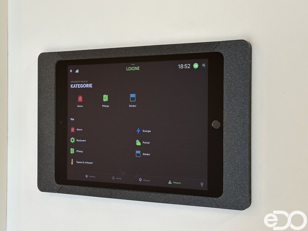 Byt dále disponuje moderním smart home systémem Loxone, který umožňuje mimo jiné inteligentní ovládání venkovních žaluzií, regulaci vytápění a chlazení v každé místnosti či monitorování spotřeby vody a energie.