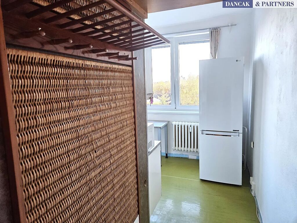 Nabízíme k pronájmu bytovou jednotku o dispozici 1+1 a výměře 36 m2, umístěnou v 7. podlaží panelového domu s výtahem.