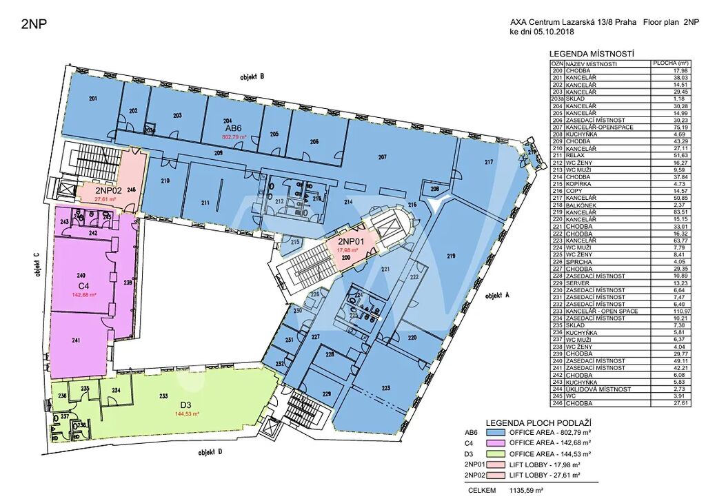 Nabízíme k pronájmu kancelář o velikosti 144 m2 ve 3. patře (jednotka D3, budova D):