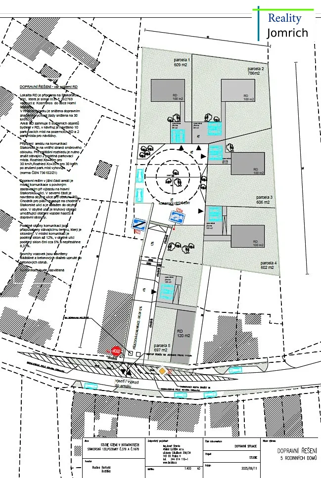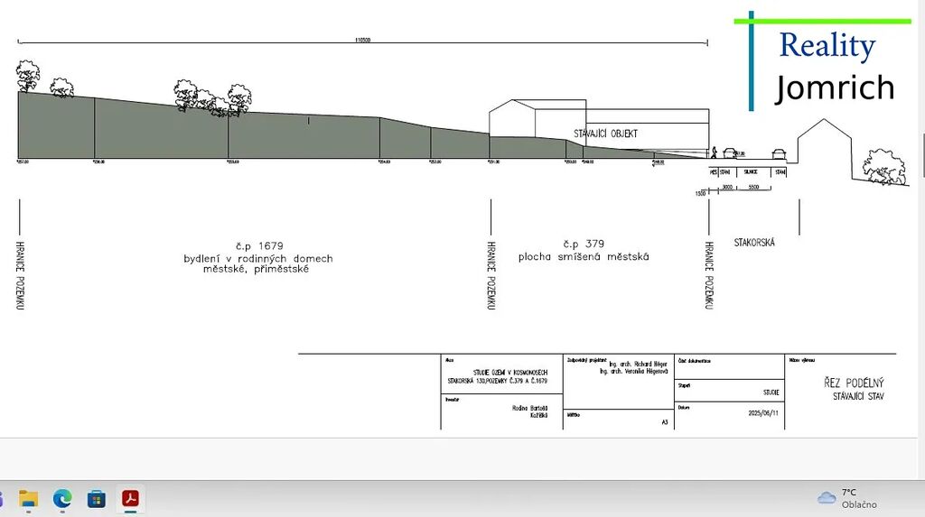 Jedná se o prodej RD i stavebních parcel ve velice lukrativním předměstí Mladé Boleslavi v obci Kosmonosy, Stakorská ul. č.p. 130, a to včetně prověřené a precizně zpracované architektonické studie pro výstavbu RD od renomovaných architektů. Jedna varianta nabízí výstavbu pěti rodinných domů a druhá sedm rodinných domů v řadové zástavbě a dvojdům. Součástí prodeje jsou i schválená stanoviska a vyjádření od Dopravního inspektorátu policie ČR, Vodovodů a kanalizace Mladá Boleslav, inženýrsko – geologické posouzení lokality aj. – v nich je obsaženo cca 6 měsíců práce profesionálního týmu.
