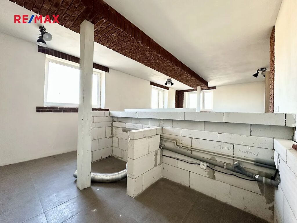 V prvním patře je připravený otevřený prostor s rozvody elektřiny a vody, vhodný pro dokončení podle představ nového majitele. Jsou zde dvě samostatné toalety a oddělená sprcha.