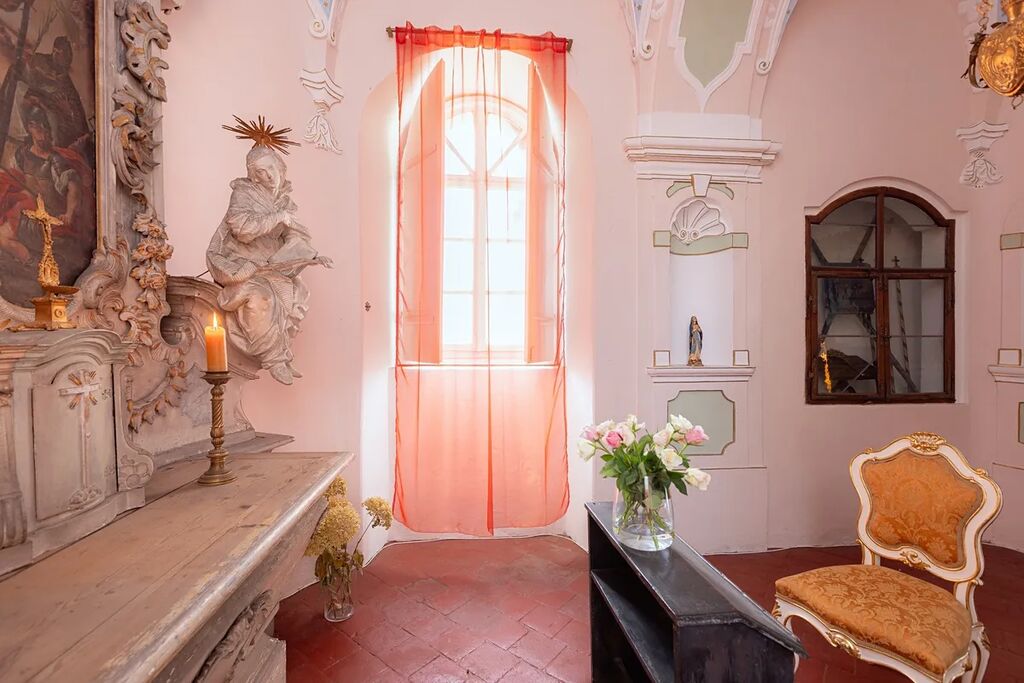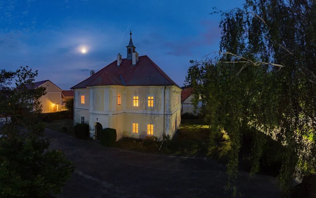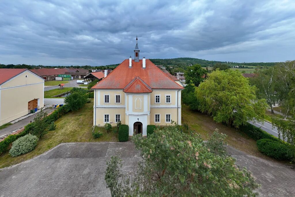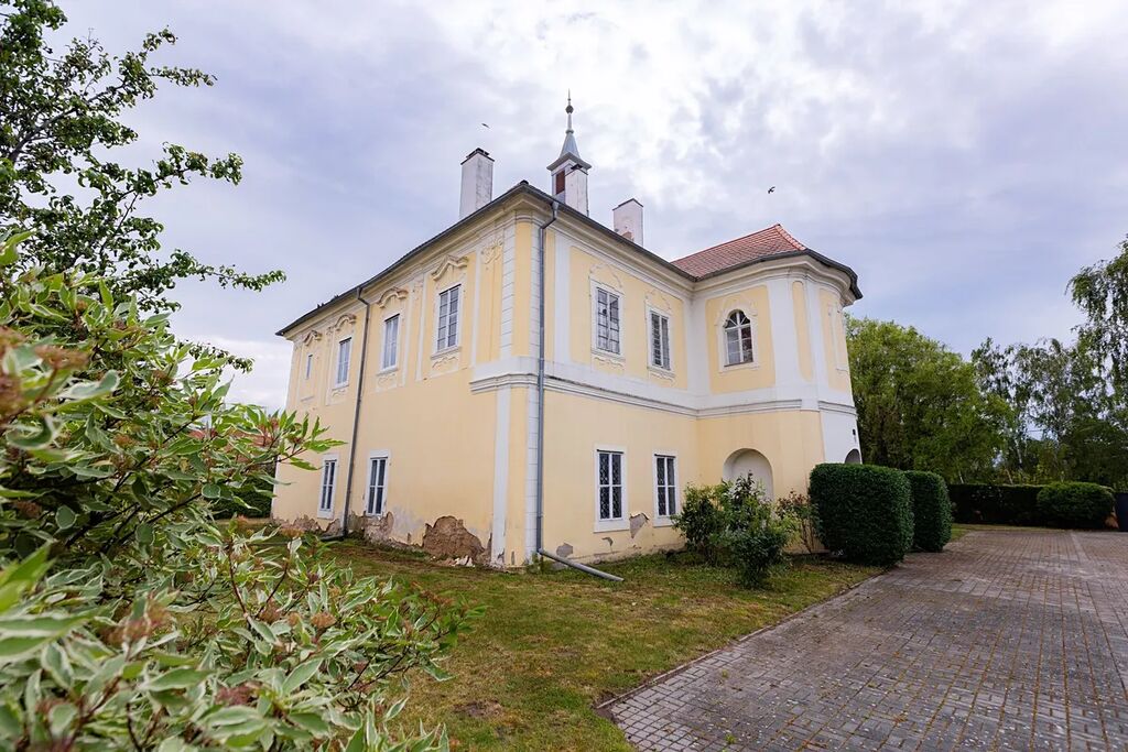 Dvoupodlažní stavbu s původní zámeckou kaplí tvoří obdélníkový půdorys o dvou podlažích. Celkem 13 místností, které jsou v obou podlažích přístupné přes centrálně umístěnou chodbu. V prvním podlaží lze pozorovat klenuté stropy, nahoře potom zdobené stropy o výšce 3,8 metru. Opravdovým klenotem je pak zcela původní kaple Čtrnácti svatých pomocníků, která je umístěna v průčelí druhého podlaží vedle hlavních komnat.