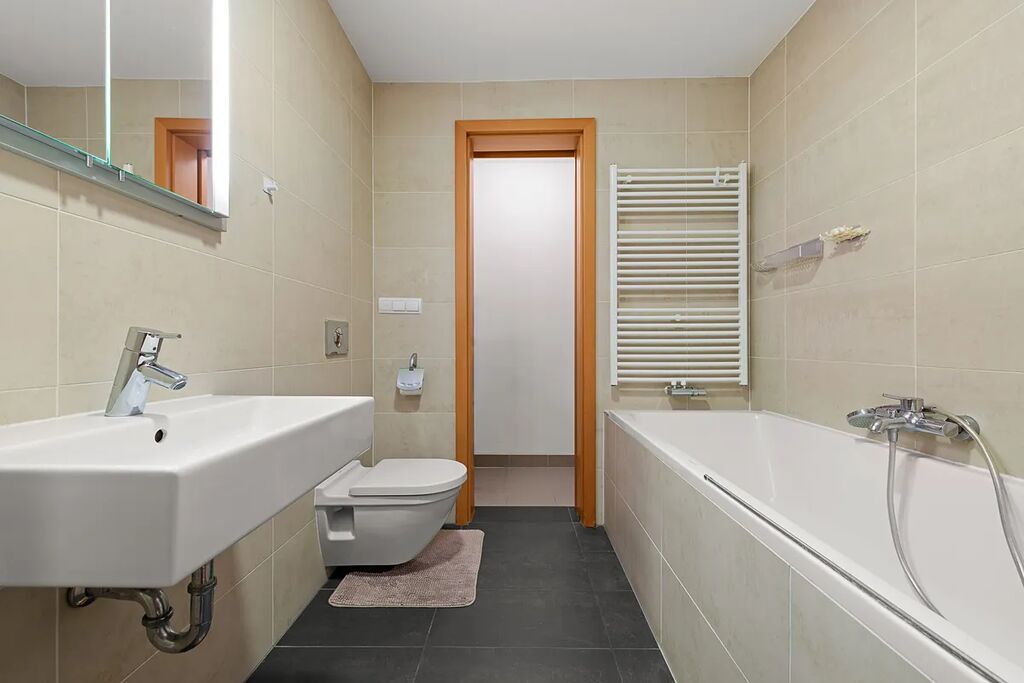 Byt je orientován do soukromého parku a nabízí krásný výhled do zeleně. Díky velkoformátovým oknům je interiér světlý a působí vzdušným dojmem. Součástí vybavení je vestavěná klimatizace pro maximální pohodlí. K bytu náleží také sklep a parkovací stání v podzemní garáži – vše je zahrnuto v ceně.