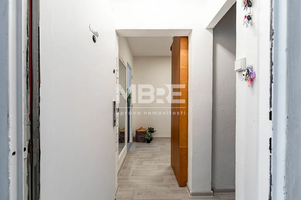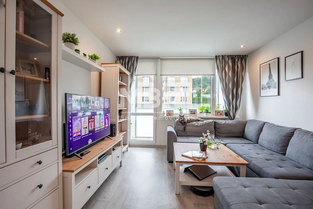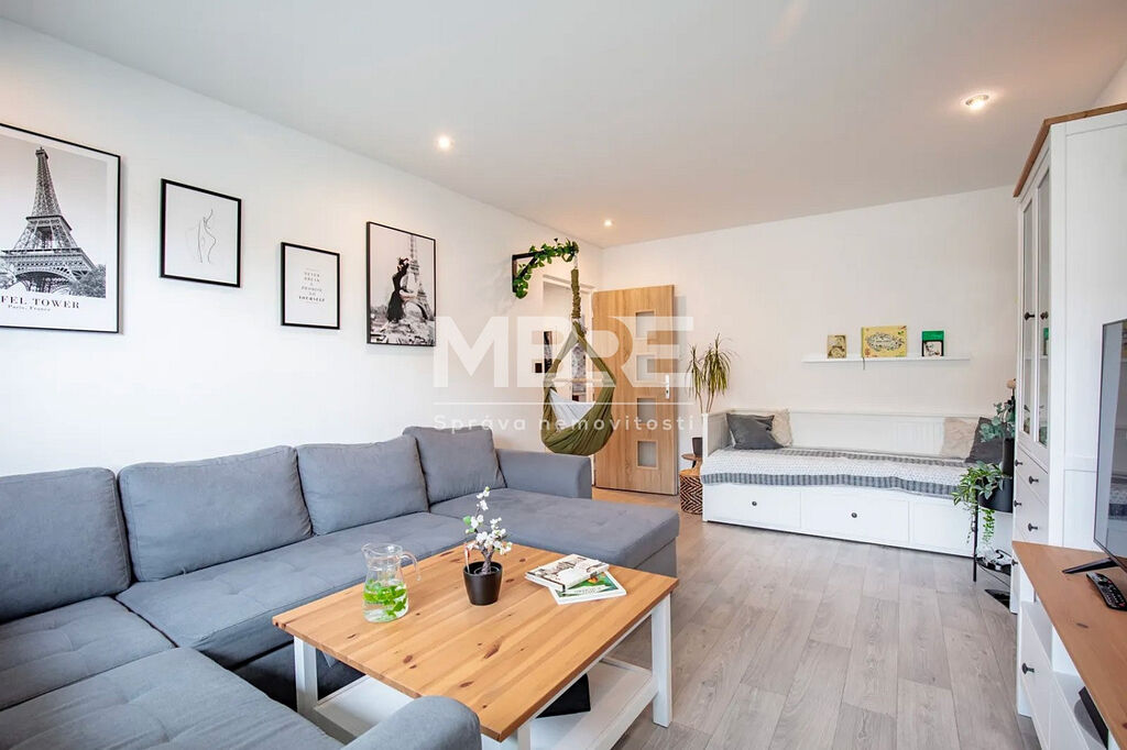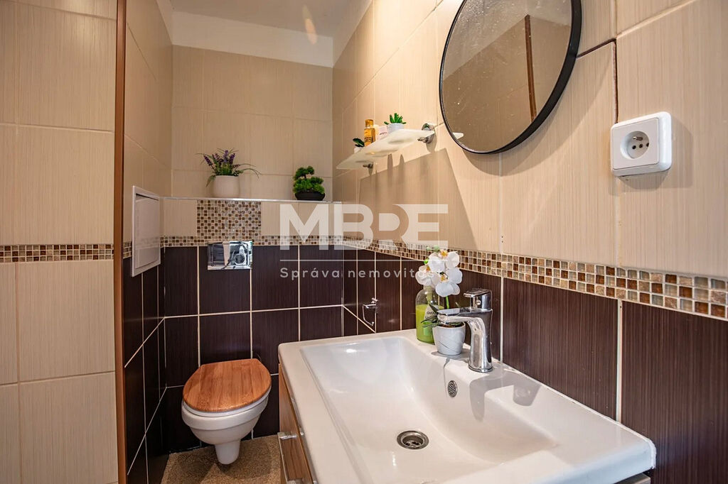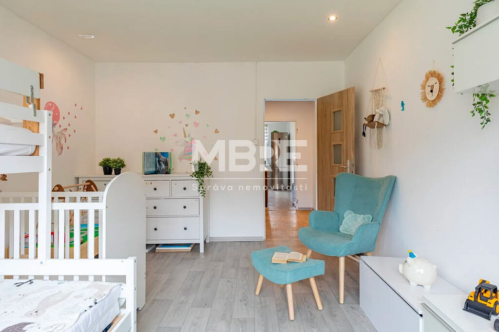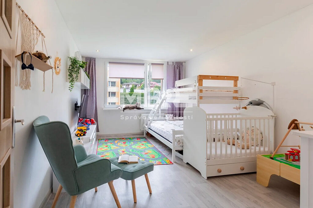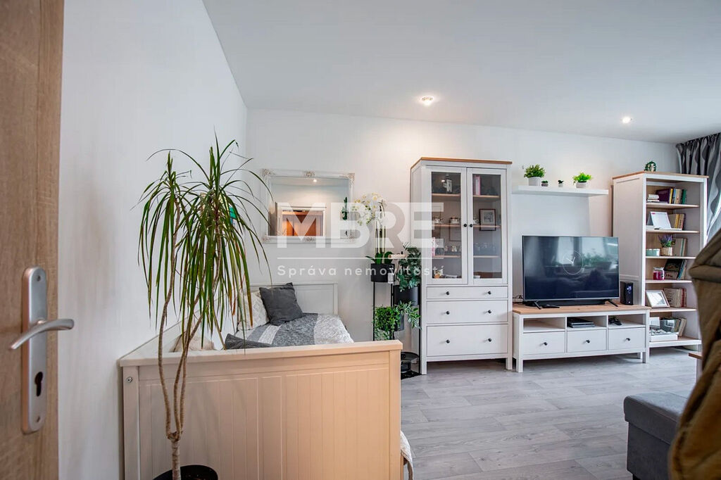 Bytová jednotka disponuje novou kuchyňskou linkou v designu světlé dřeviny se sklokeramickou varnou deskou a místem pro pračku, moderní koupelnou s rohovou vanou, obklady v béžovém tónu a LED osvětlením, prostornými pokoji laděné do světlých tónů a zasklenou lodžií, ideální pro relaxaci s kávou nebo knížkou.