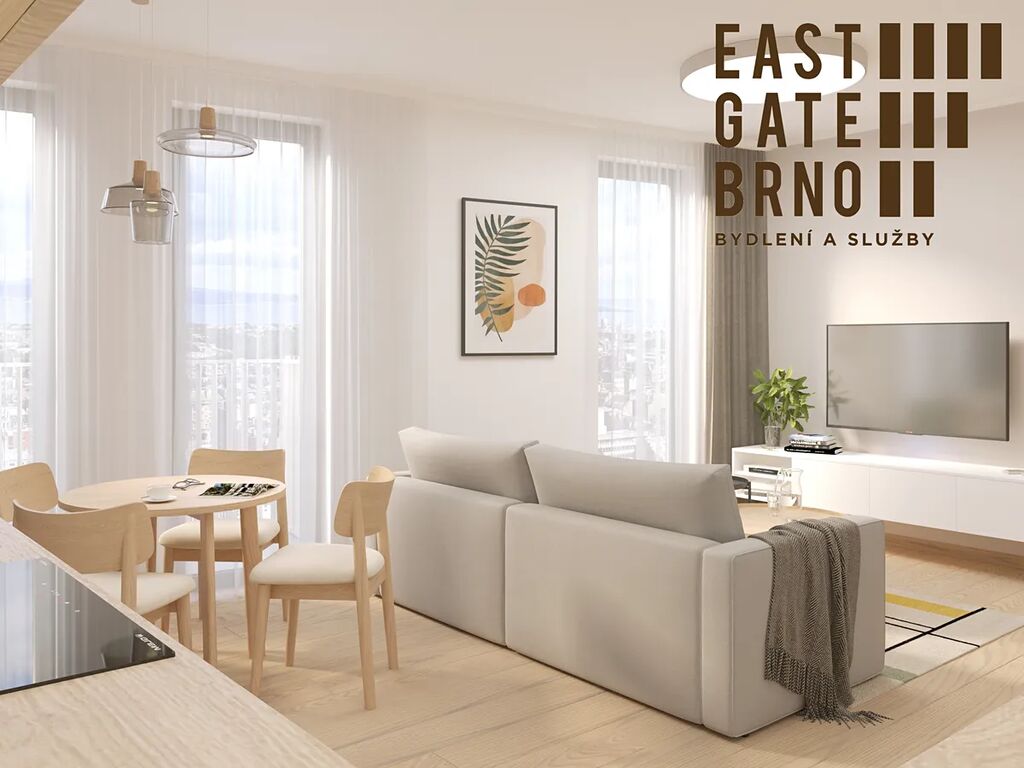 V nově zahájené výstavbě projektu EASTGATE v Brně - Slatině při ulici Řípská nabízíme prodej jedinečného bytu s 2 bylkony. Jedná se byt 2+kk ve II.NP. Dům je vybaven výtahem. Byt je prostorný a každý pokoj má přístup na balkon (2 x balkon 2,97 m2). Dispozice je řešena jako obývací pokoj s kuchyní (26,04 m2) a pokoj (13,81 m2), koupelna s WC (7,07 m2) a velmi prostorná chodba (10,74 m2) s možností umístění vestavných skříní. Aktuálně se provádí základání stavby a tak je možné přizpůsobit si byt vlastním požadavkům v rámci klientských změn.