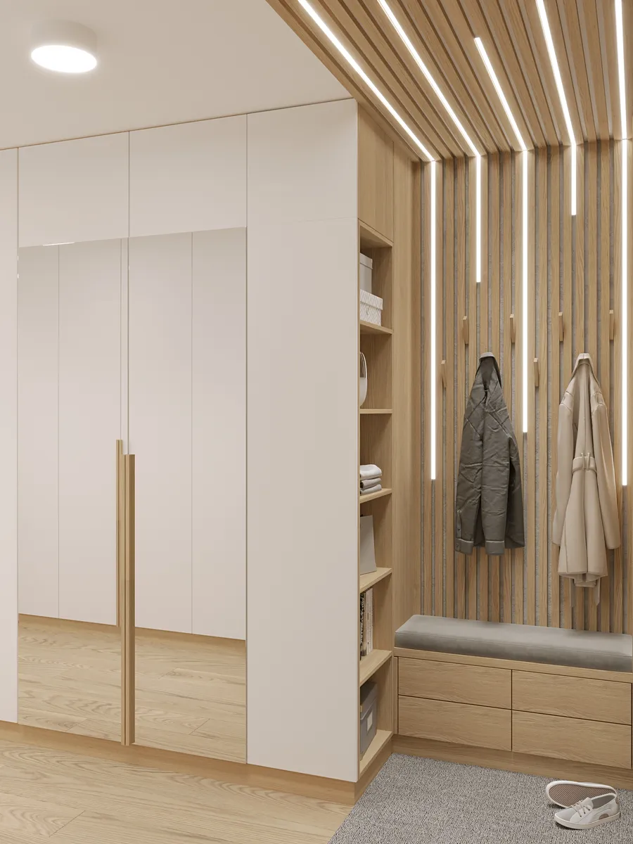 Čistá plocha místností činí 113 m² a poskytuje dostatek prostoru pro rodinný život. Ke komfortnímu bydlení přispívají také 2 balkony, každý o výměře 2,97 m² a sklep o ploše 3,05 m². Dispozice bytu nabízí pohodlnou obsluhu všech místností z chodby, která umožňuje přístup do všech pokojů a dále do koupelny, samostatného WC a komory. Chodba je natolik prostorná, že se zde dají umístit vestavěné skříně, které zajistí dostatek úložného prostoru.