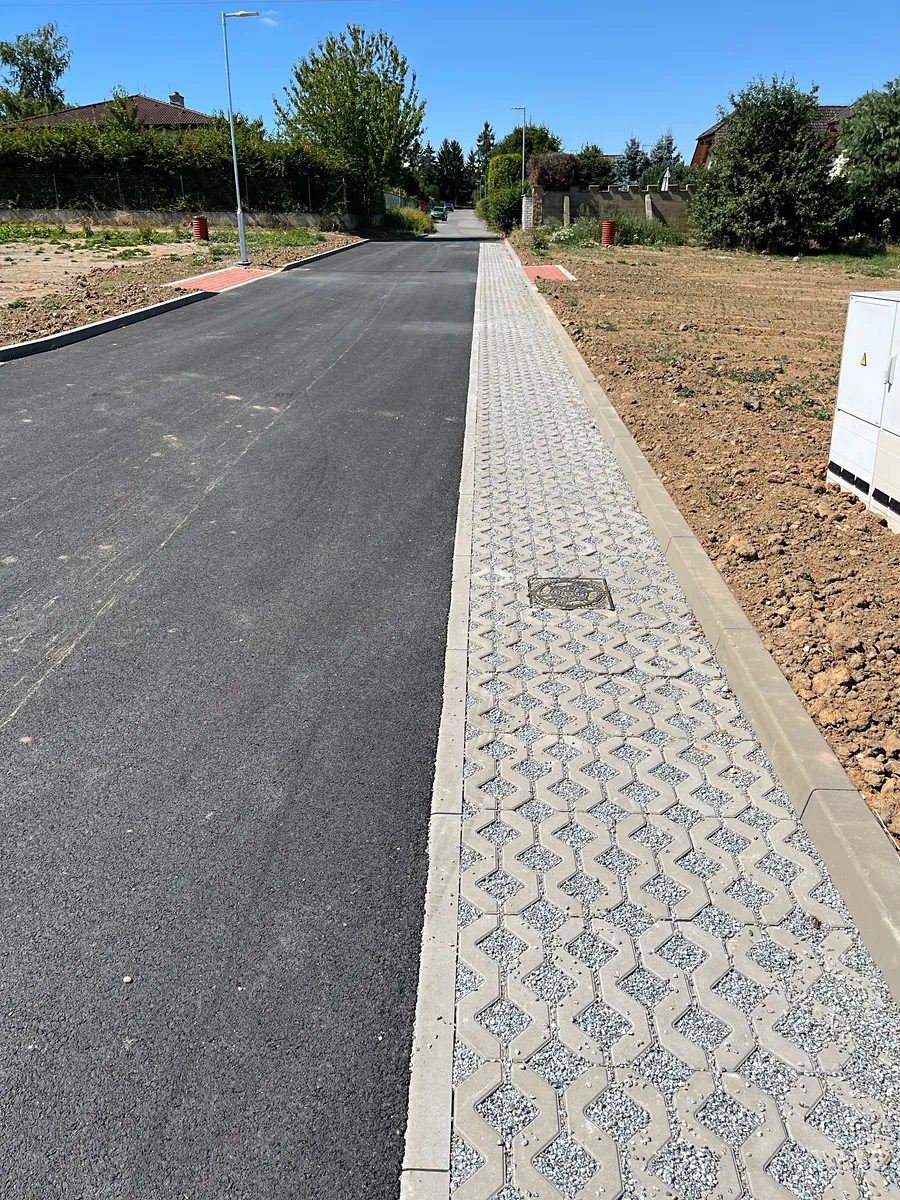 Všechny pozemky jsou nově kompletně zasíťované - obecní vodovod, obecní kanalizace a elektro přípojka (přípojky jsou vytažené přímo na pozemky - bez další investice). Mezi pozemky je nová asfaltová komunikace s veřejným osvětlením. Komunikace se budou převádět do vlastnictví obce.