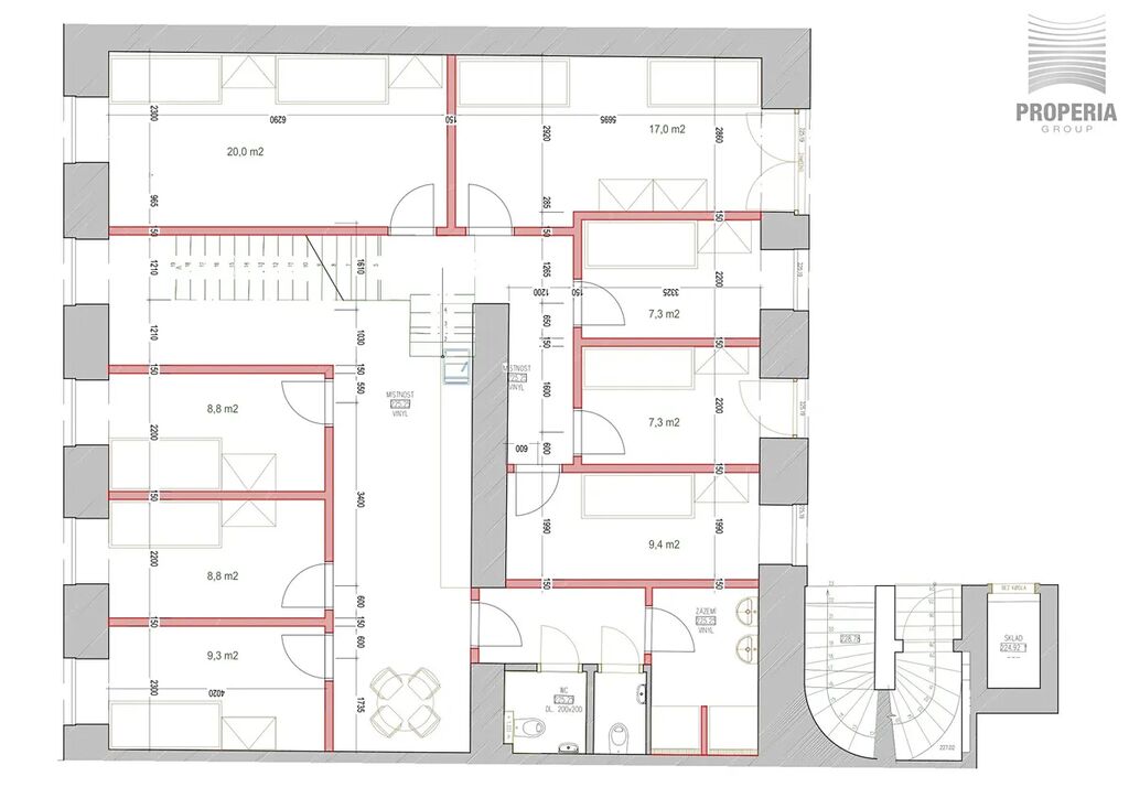 Nabízíme k pronájmu nově rekonstruované prostory v budově o třech podlažích, ideální jak pro ubytování, tak pro reprezentativní showroom s výlohou do ulice Štefánikova.