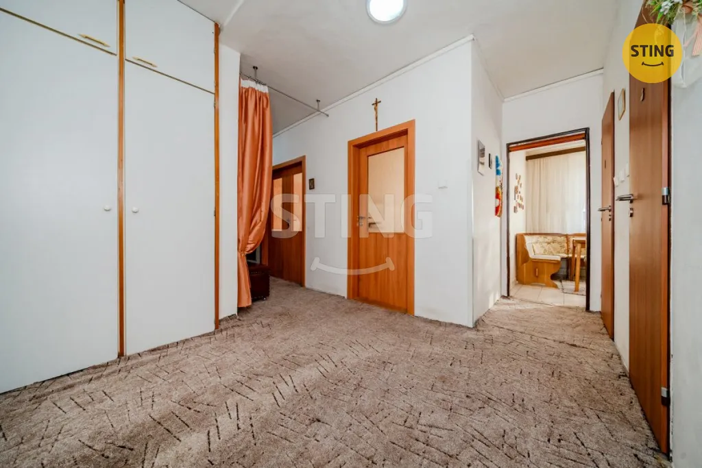 Úložné prostory: Vestavná skříň a komora přímo v chodbě + sklepní kóje.