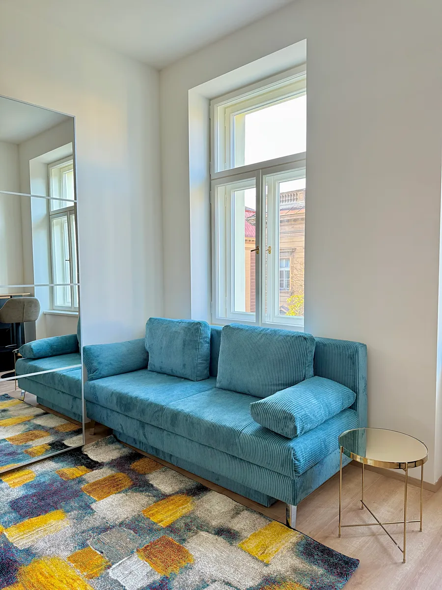 Centrum Prahy – pěší vzdálenost na metro, tramvaj, kavárny a obchody.