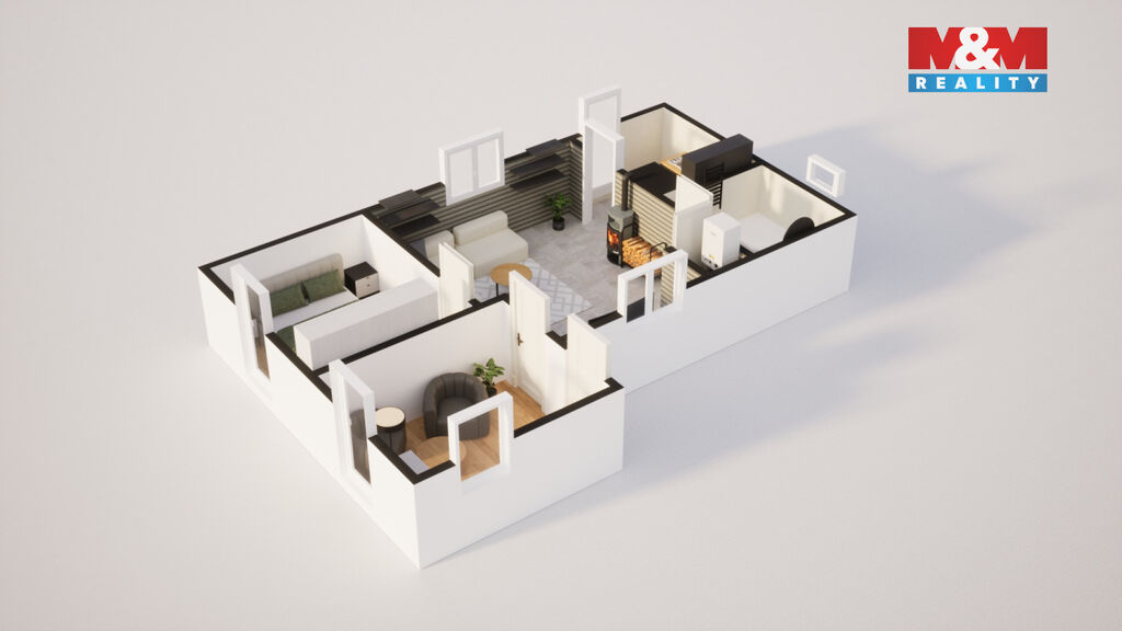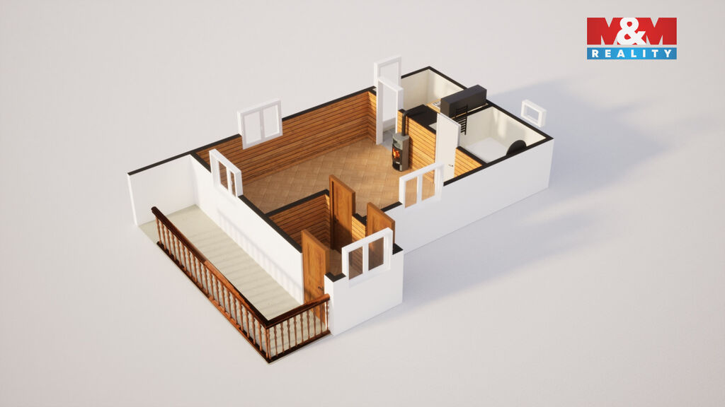 Interiér poskytuje vcelku působivé prostory, které do budoucna mohou posloužit jak pro rekreaci, tak po určitých úpravách - pro trvalé bydlení.