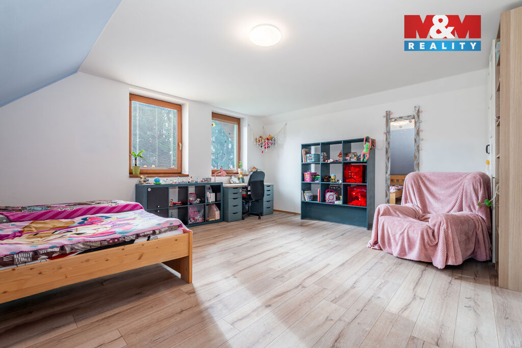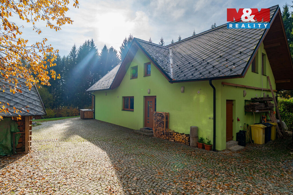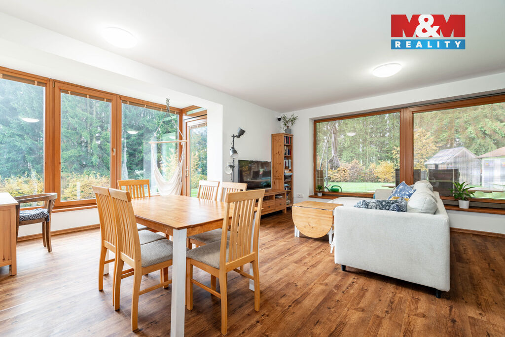 Nemovitost z roku 2009 prošla nedávnou rekonstrukcí, při které došlo k úpravě interiérů zahrnující lehké dispoziční úpravy, nové podlahové krytiny nebo například novou kuchyň i obě koupelny. Standardem je zde podlahové topení s elektrokotlem, doplněno o kanadská krbová kamna v obývacím pokoji. Na pozemku naleznete vlastní studnu napojenou na okruh v domě. Jako další zdroj vody je využíváno ale i připojení na vodovod. Dispozice domu je řešena jako 5+kk. Tři samostatné ložnice se nacházejí v horním patře. V přízemí je dále k dispozici obývací pokoj napojený na halu a další pokoj, hodící se jako pracovna.