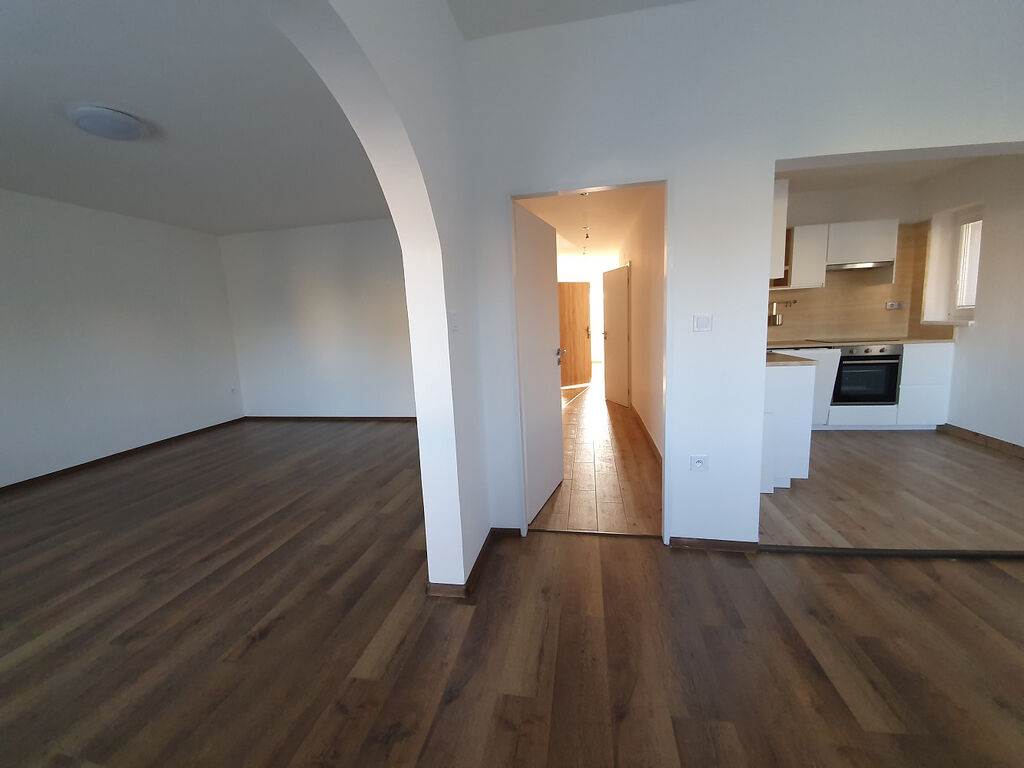 Nabízíme přímo od majitele k dlouhodobému pronájmu krásný byt 3+1 o velikosti 90m² v 1. patře rodinného domu o třech bytových jednotkách v obci Darkovičky u Hlučína. Byt má samostatný vchod ze společného schodiště. Pokoje jsou neprůchozí. V oknech jsou žaluzie a síta proti hmyzu. Dva pokoje (o velikosti 17,6 m² a 14,8 m²) jsou situovány do zahrady. V druhé části bytu je velký obývací pokoj (25,5 m²) s balkónem, a kuchyň s prostorem pro velký jídelní stůl. Součástí kuchyňské linky jsou vestavěné spotřebiče jako myčka nádobí, mikrovlnná trouba a elektrická trouba s varnou sklokeramickou deskou. Koupelna (6,5 m²) je vybavena sprchovým koutem i vanou.