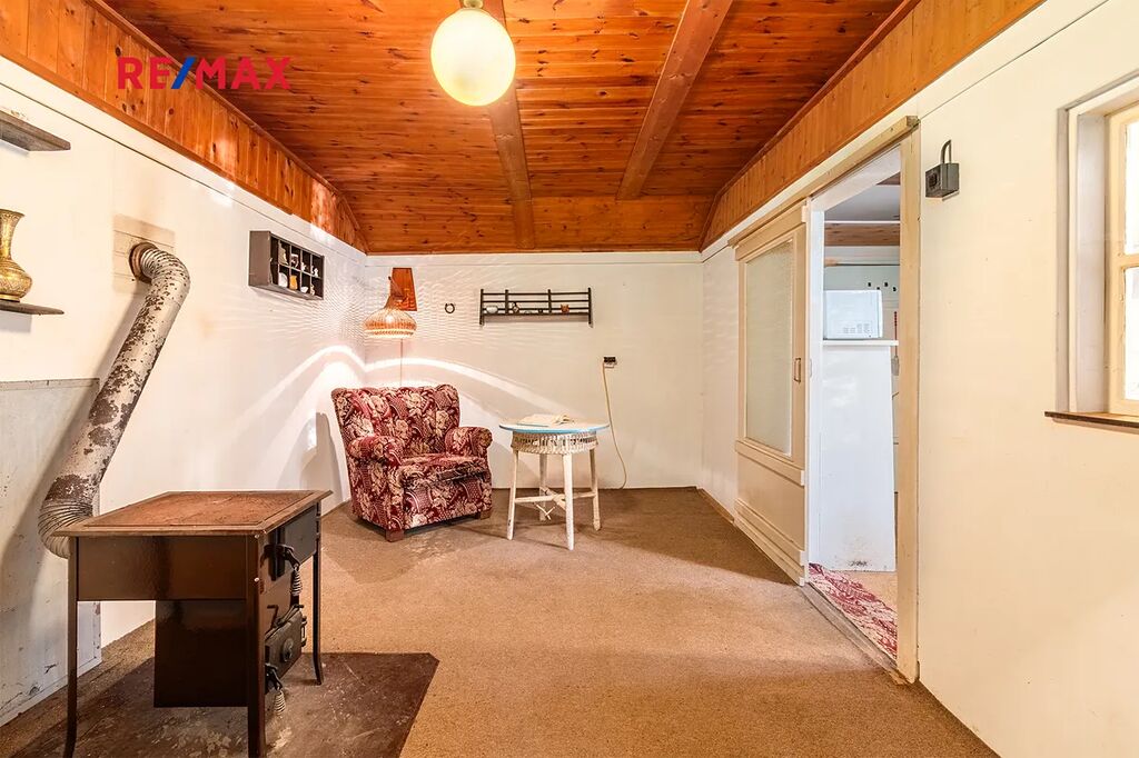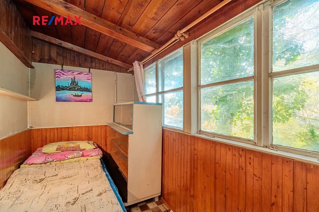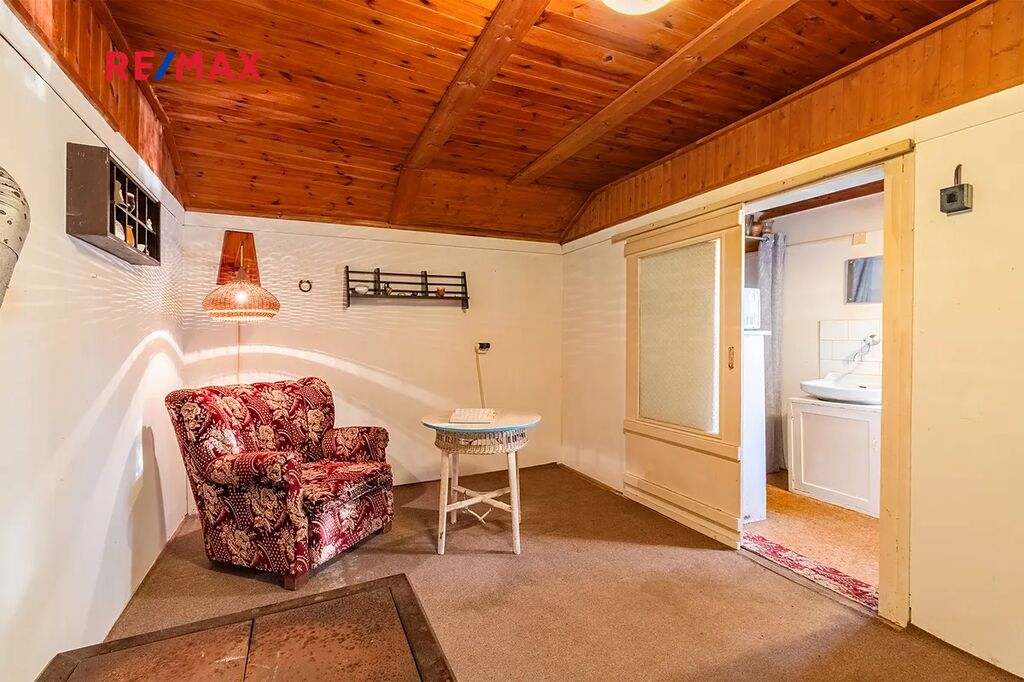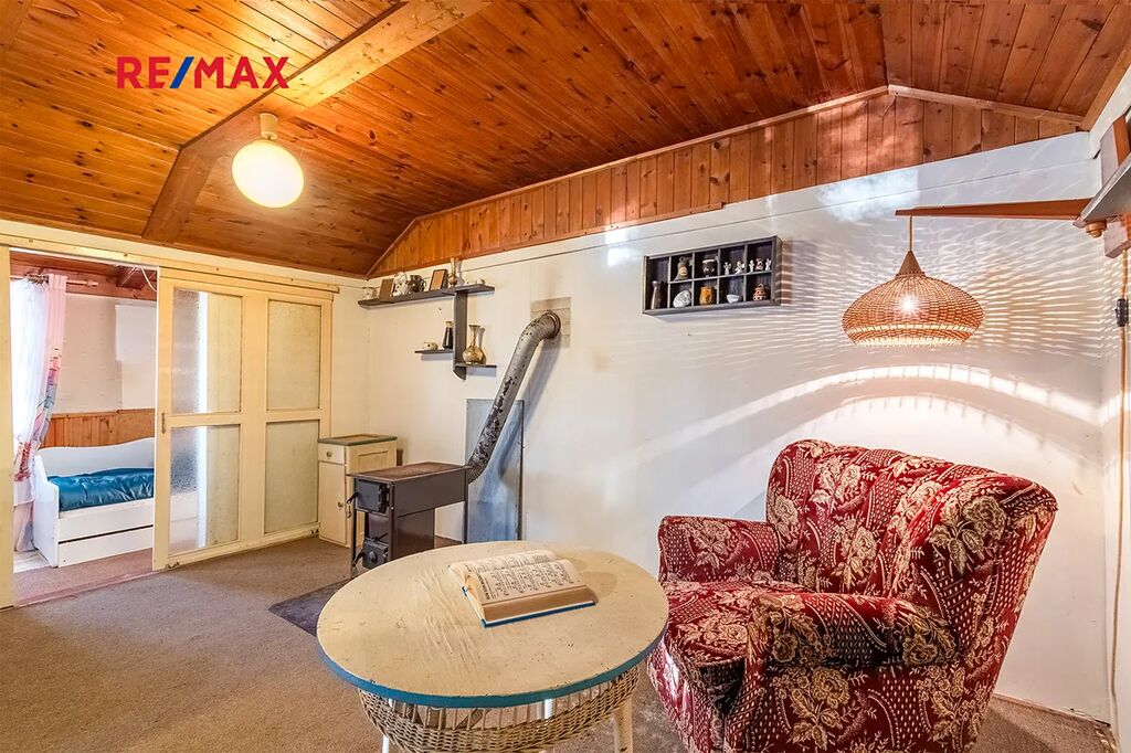 Na vlastním pozemku 184 m2 se nachází dřevěná chata, do které je přivedena voda z vrtané studny o hloubce vrtu 13 – 16 m. Chata je připojena na elektřinu, plyn je rozveden mědí z plynové bomby a přitopit si můžete v kamnech. Dispozice je 2+1, ložnice, obývací pokoj a kuchyně. Sprcha má vstup ze zadní části chaty, kde se také nachází technická místnost. Je zde několik úložných prostorů a dostatek parkovacích míst.