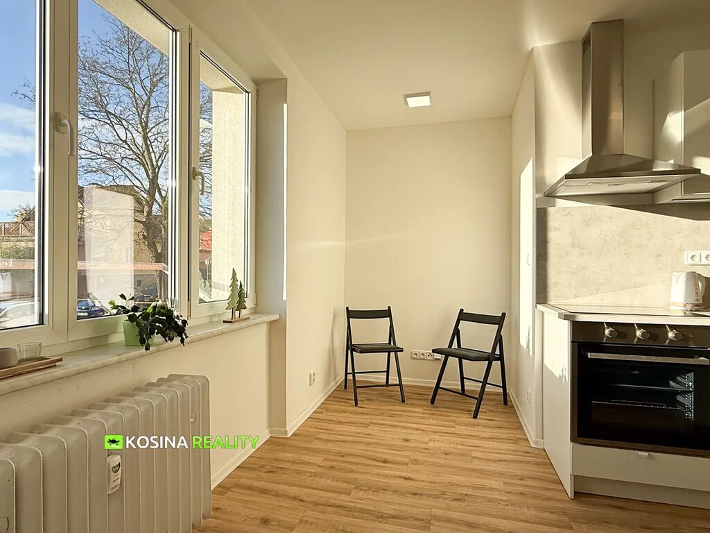 Nabízím k pronájmu byt 1+kk v osobním vlastnictví o velikosti 27 m2. Byt se nachází v prvním nadzemním podlaží třípodlažního bytového domu. Byt je po kompletní rekonstrukci. K pronájmu je včetně vybavení, které je v přiložené fotodokumentaci. Dům má zateplenou fasádu a novou střechu. Poloha bytu v domě je situovaná na jihovýchod, je slunný a teplý. Čisté nájemné za byt je ve výši 7.000,- Kč měsíčně, k tomu se platí poplatky spojené s užíváním bytu ve výši 3.500,- Kč měsíčně při jedné osobě. Vratná kauce je 14.000,- Kč. Nájemné se platí vždy na měsíc následující. Poplatek za zprostředkování pronájmu je ve výši jednoho čistého měsíčního nájemného. Lokalita je v klidném prostředí, v těsné blízkosti veškeré občanské vybavenosti. SVJ v domě je fungující a sousedé jsou slušní. Tepelný štítek nebyl zatím dodán, proto uvádím PENB třídu „G“. Pro více informací mě kontaktujte.