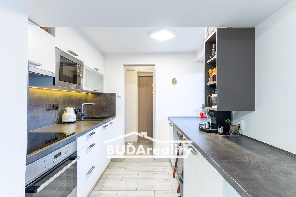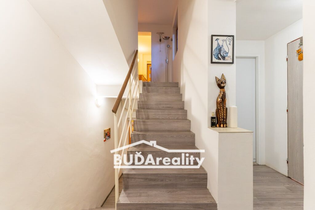 Menší byt má ideální parametry pro 1-2 bydlící osoby. Tato bytová jednotka se samostatným vstupem z chodby má výměru cca 40 m2. Disponuje prostornou lodžií s výhledem do zahrady. Má prostorný obývací pokoj, kuchyň s jídelnou, pokoj, sloužící jako společenská místnost, koupelna s wc a technická místnost. Technická místnost slouží pro celý dům. Zde je k dispozici plynový kotel a zásobník vody pro ohřev vody. Kuchyň disponuje moderní kuchyňskou linkou včetně spotřebičů. Tato část domu prošla kompletní rekonstrukcí včetně rozvodů v r. 2018.