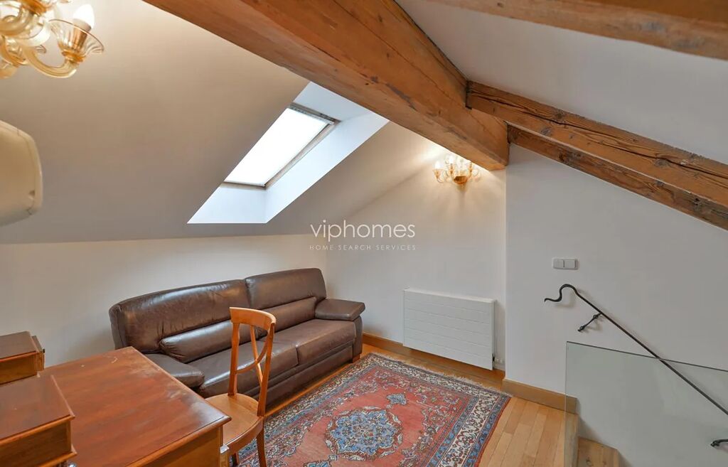V hlavní úrovni bytu se nachází vstupní hala s úložnými prostory, plně vybavený kuchyňský kout s jídelním prostorem spojený s obývacím pokojem s krbem a vstupem na terasu, hlavní ložnice, koupelna vybavena vířivkou a toaletou. Další otevřená ložnice a pracovní kout s klimatizací jsou situovány v horním patře. Vybavení: pračka, myčka, nádobí a sklo, LCD televize, ložní prádlo. Parkety, bezpečnostní dveře, satelitní TV, internet, alarm, videotelefon a klimatizace.