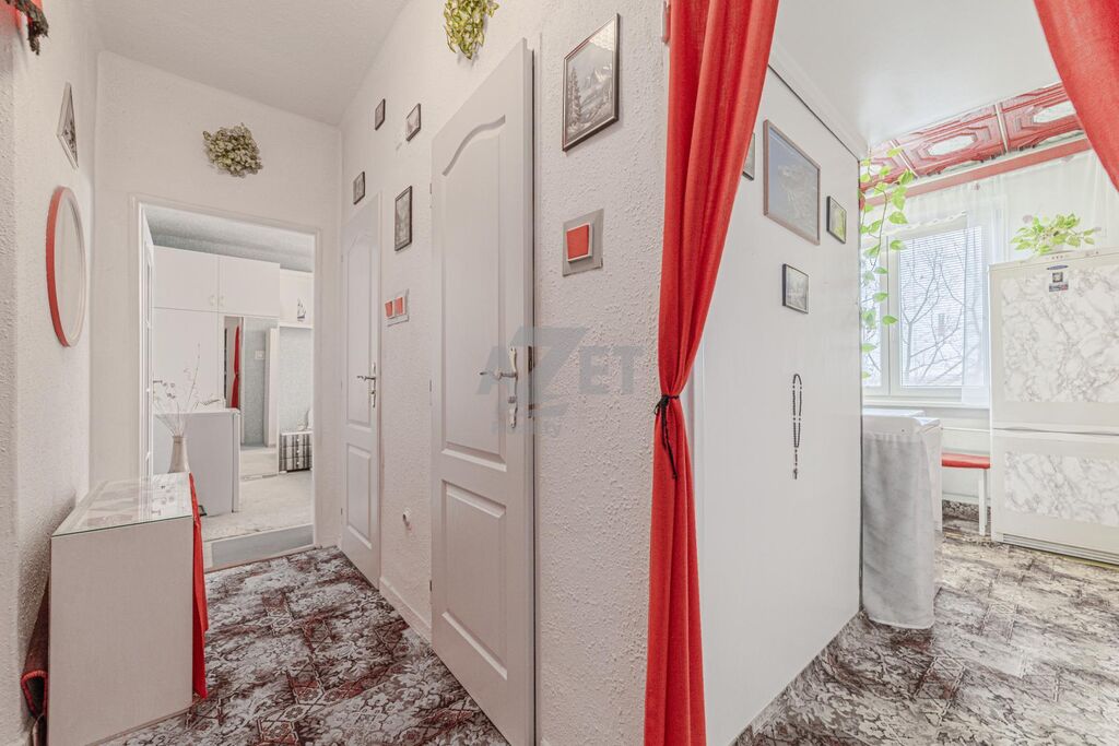 Naše společnost Vám exkluzivně nabízí k prodeji družstevní byt 2+1 se zaskleným balkónem v 6. podlaží z osmi Celková výměra prodávané nemovitosti včetně sklepa činí 58 m2. Velmi žádaná oblast s bezprostřední dostupností na zastávky MHD. Měsíční předpis plateb 4134,- Kč včetně FO. Bezbariérový přístup až na samotné patro. Protipožární bezpečnostní vstupní dveře. Neprůchozí pokoje. Kuchyňská linka s el. spotřebiči. Keramicky obložená koupelna se zapuštěnou vanou. Samostatné WC Kombi. Úložná skříň v předsíni. Kombinované podlahy (zachovalé parkety v obývacích pokojích vs PVC linoleum). Plastová okna se žaluziemi a parapety. Výhled na východní stranu. Litinové radiátory. K bytu náleží zabezpečený sklep. Možnost využívání společných prostorů v kolárně. Současný majitel družstevního podílu by chtěl na bytové jednotce and #34;dožít and #34; ve formě podnájmu.