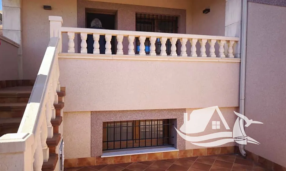 Dům má dvě ložnice, tři koupelny, světlý obývací pokoj s jídelní částí, kuchyň, terasy, garáž a velké solárium s výhledem na slavná růžová solná jezera Torrevieje. Díky promyšlenému dispozičnímu řešení působí dům vzdušně a otevřeně. V přízemí se nachází obývací zóna s kuchyní a koupelnou, v patře pak dvě pohodlné ložnice s vlastními koupelnami a přístupem na terasy. K domu náleží také prostorný podsklepený prostor – ideální pro domácí fitness, hernu nebo sklad.