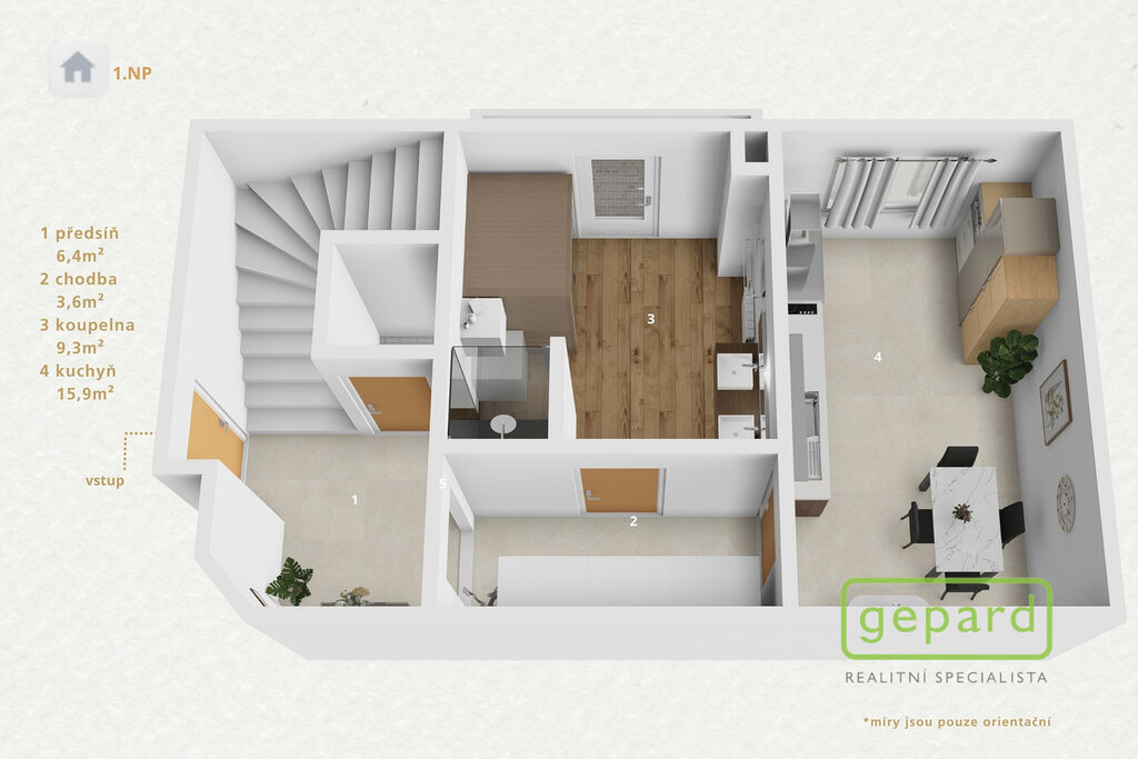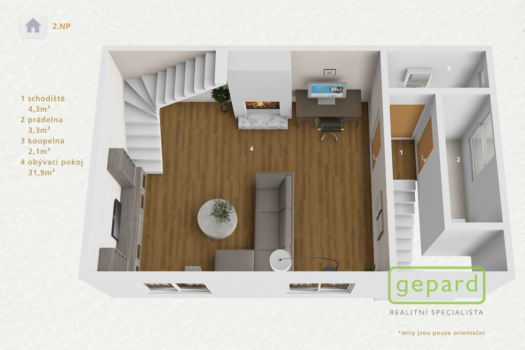 Virtuální 3D prohlídka, která je součástí prezentace, vám pomůže lépe si představit dispozici domu i jeho atmosféru.