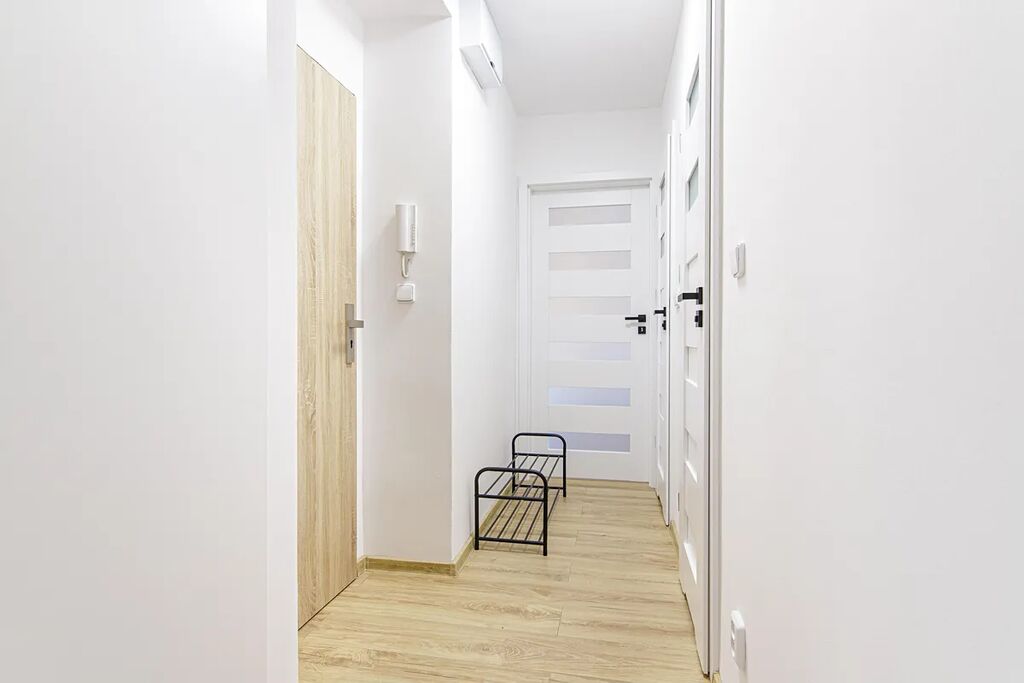 V celém bytě jsou nové plovoucí podlahy, interiérové dveře s obložkami, nové vstupní dveře, nové omítky a elektroinstalace v mědi.