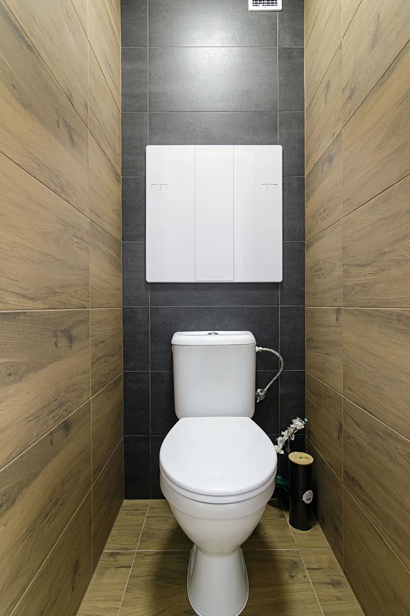 Samostatná toaleta rovněž s obklady a dlažbou.