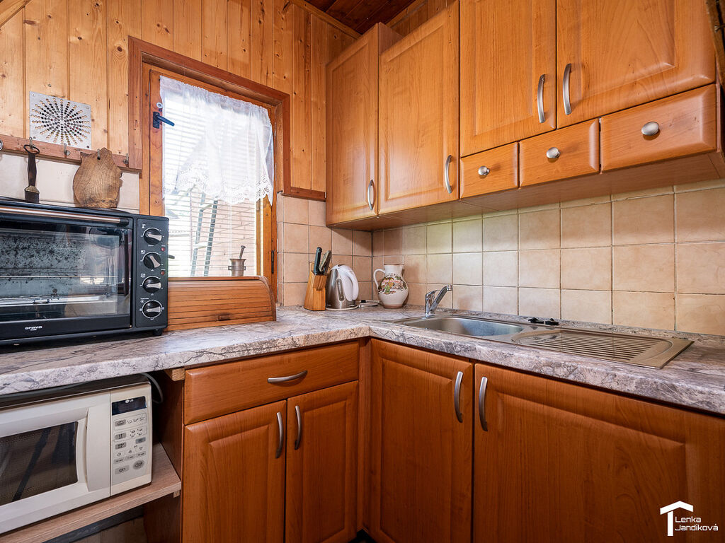 Chata stojí na vlastním pozemku s výměrou 181m² a byla postavena v roce 1987. Je napojena na obecní vodu, má zavedenou elektřinu a odpad je svedený do septiku. Vytápění je řešeno pomocí kamen, která jsou napojena na nový komín s nerezovou vložkou. Ohřev vody je řešen pomocí elektrického bojleru. Patrová chata s podlahovou plochou 42m² disponuje prostorným obývacím pokojem, kuchyňským koutem, verandou a dále vstupní chodbou s úložným prostorem a zádveřím, kde je vstup do koupelny. Koupelna je osazena sprchovým koutem a je spojená s WC. V patře je velký světlý pokoj. Na dům navazuje garáž. .