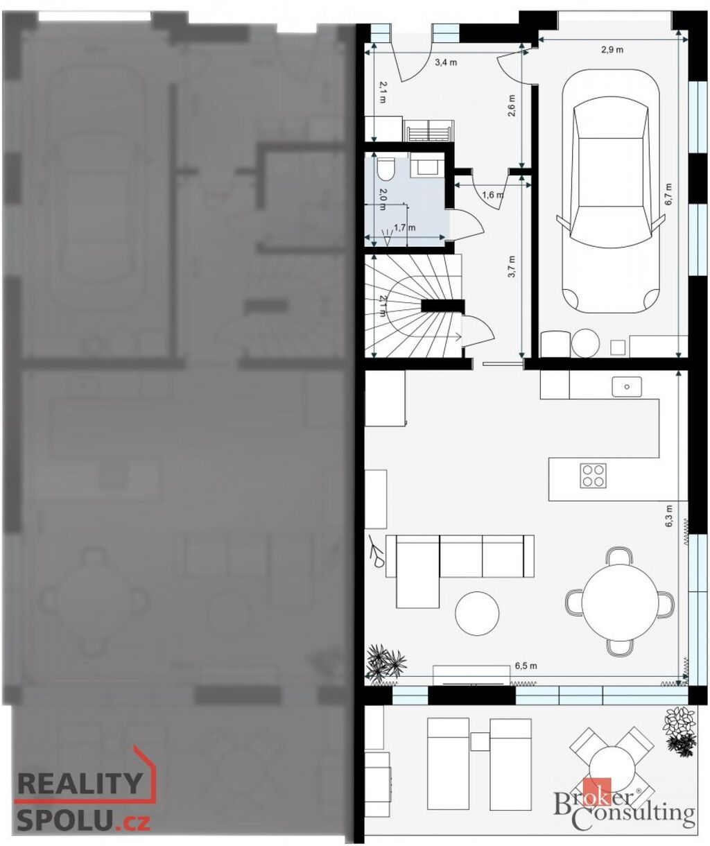 • Prostorná garáž s elektrickým pojezdem