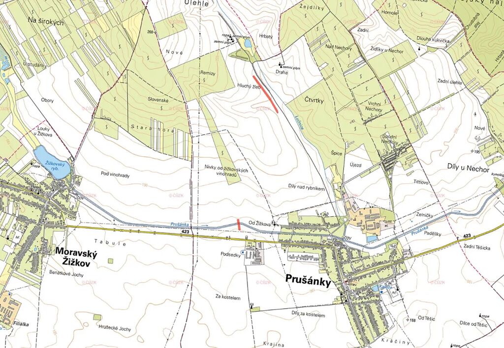 Pozemky se nachází u vodních toků Prušánka a Lučnice. Leží v rovinatém zemědělském terénu. Dle katastru nemovitostí je ke všem zajištěn přístup po veřejných parcelách.