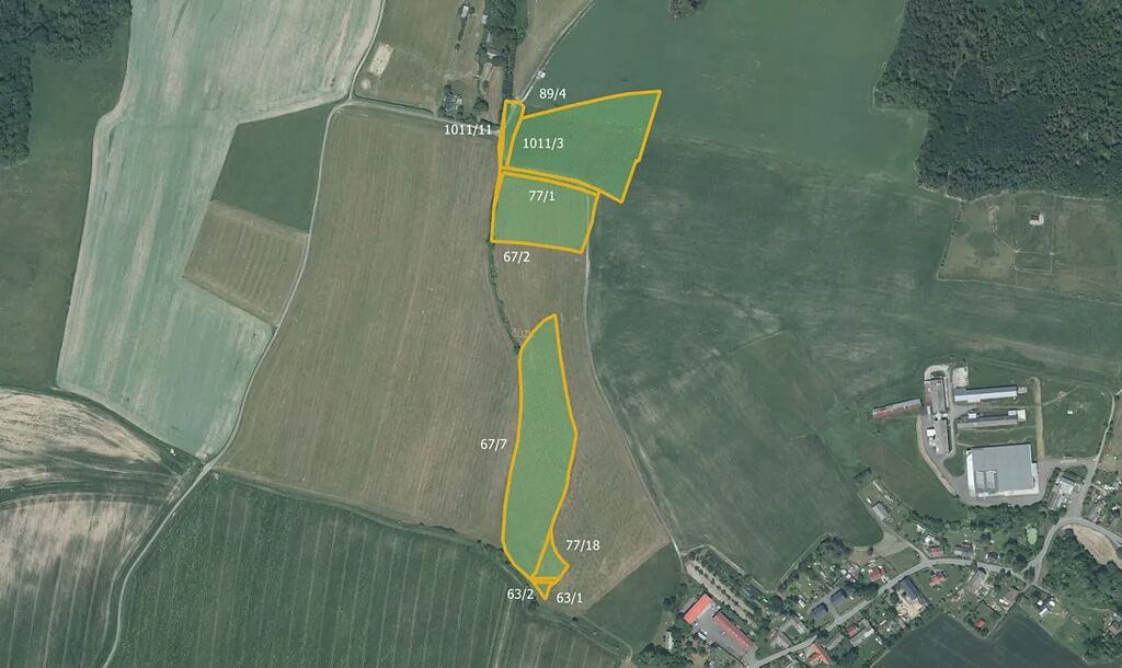 1/2 na parcelách č.: 63/1, 63/2, 67/2, 67/7, 77/1, 77/18, 89/4, 1011/3 a 1011/11.