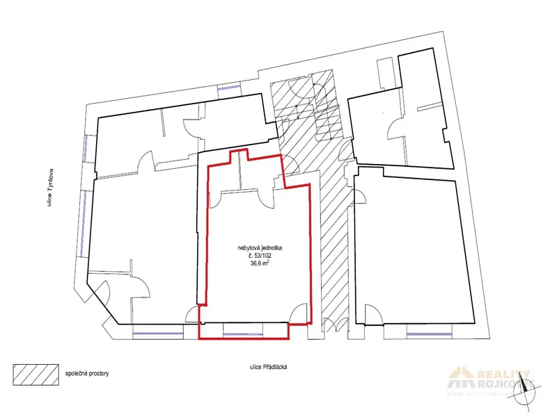 Nebytový prostor s výměrou 36 m² vhodný k provozování kanceláře či obchodu s vlastním vchodem z frekventované ulice. Veřejné parkoviště u objektu.