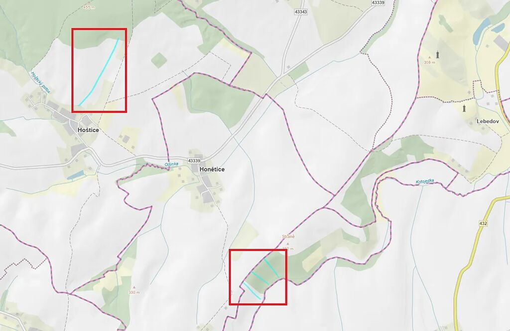 V kú Hoštice u Litenčic na LV 107 se jedná o tento pozemek:
