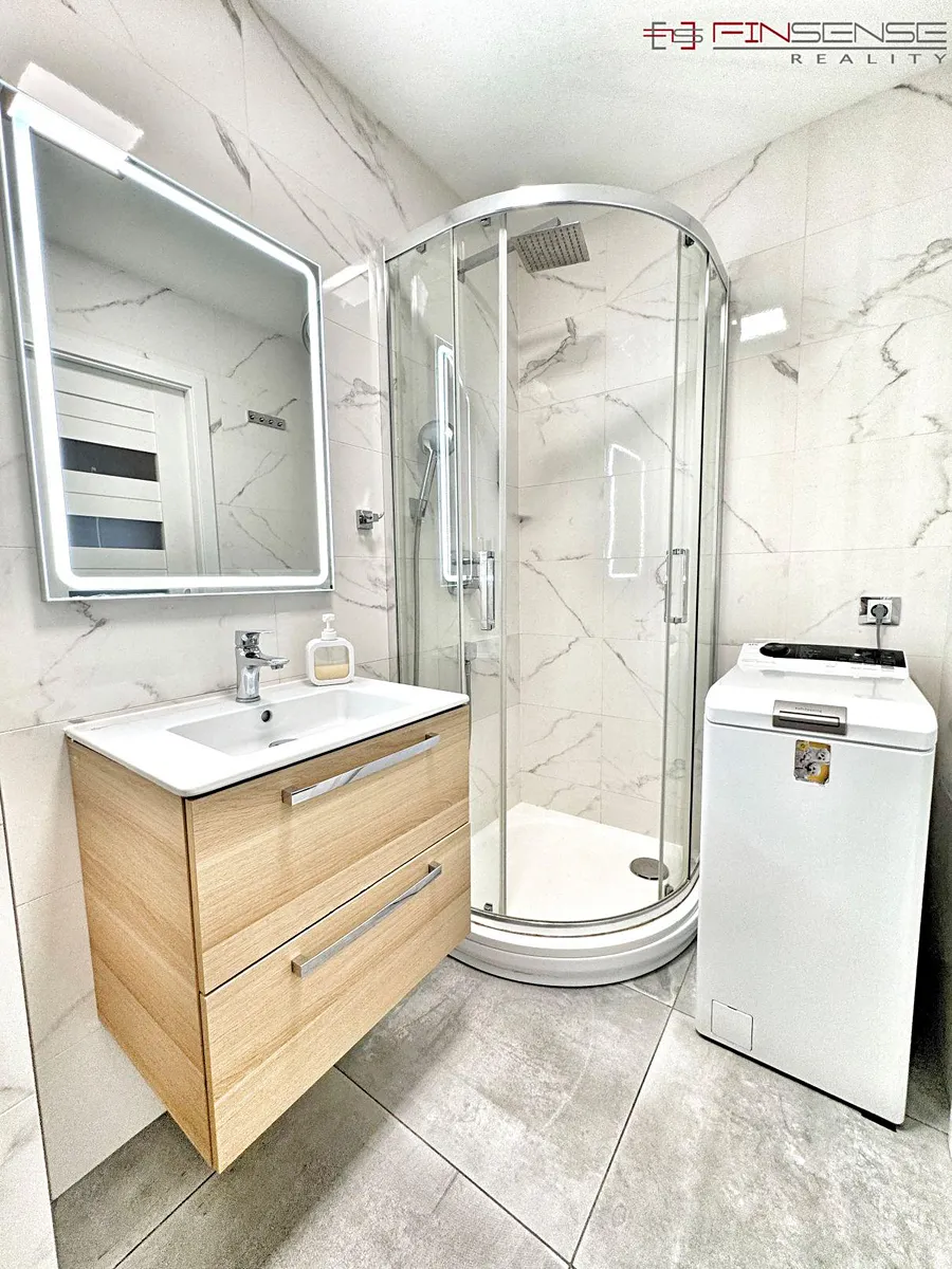 Součástí je moderní kuchyňská linka s vestavěnými spotřebiči. V kuchyni a koupelně je instalováno podlahové vytápění. Dispozice bytu nabízí neprůchozí pokoje, které zajišťují dostatek soukromí.