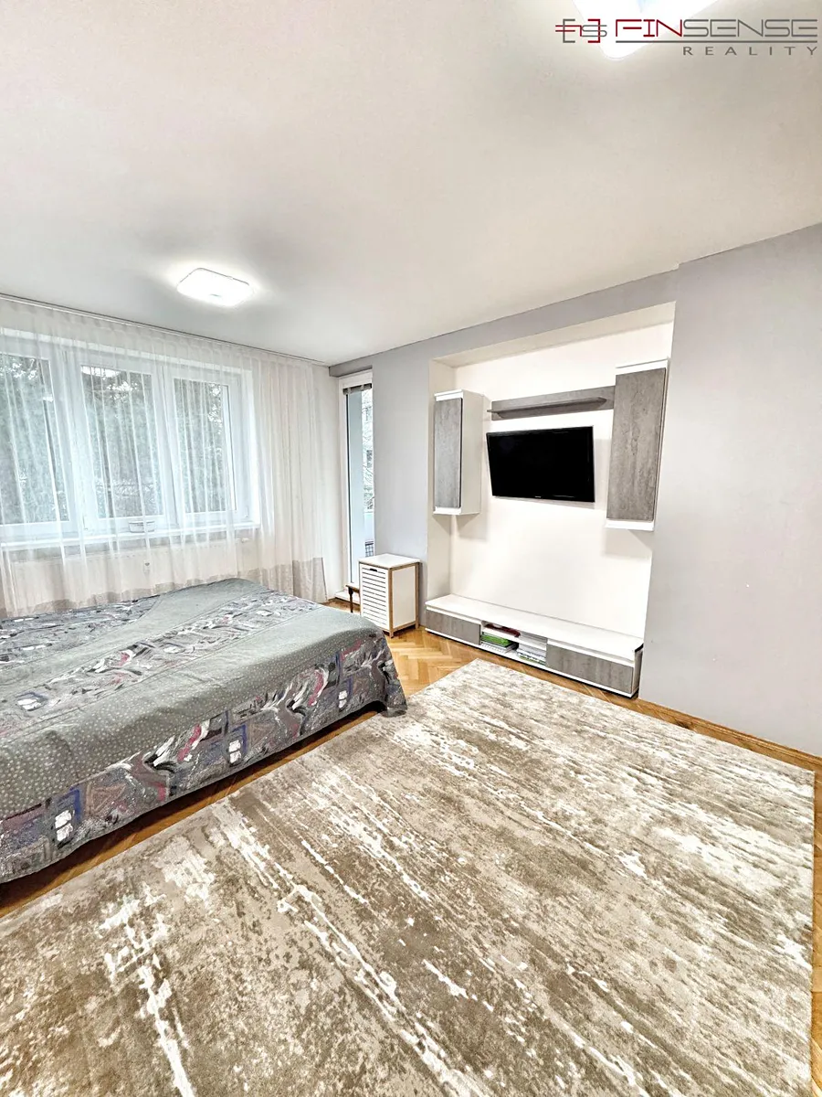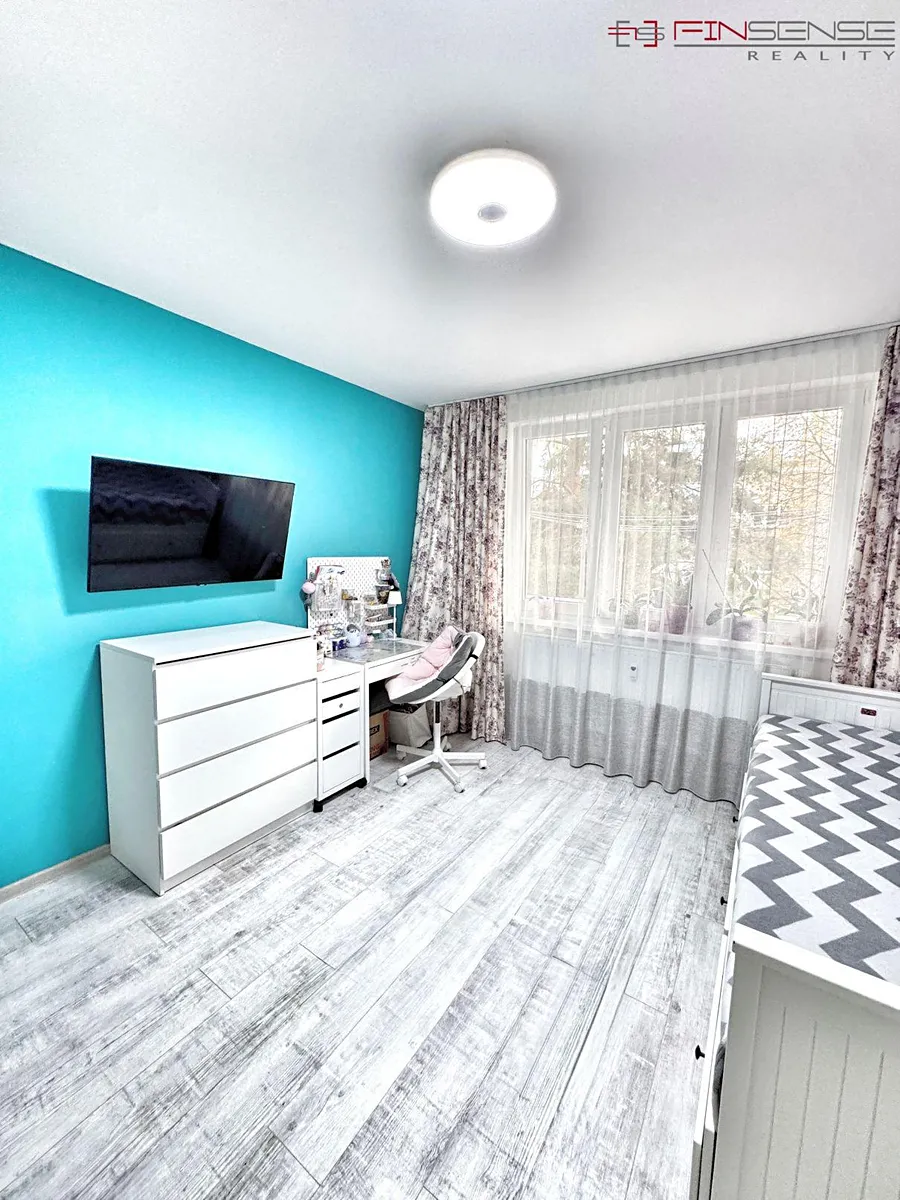K bytu náleží sklepní prostor upravený jako pracovna, vhodný pro práci z domova nebo volnočasové aktivity.
