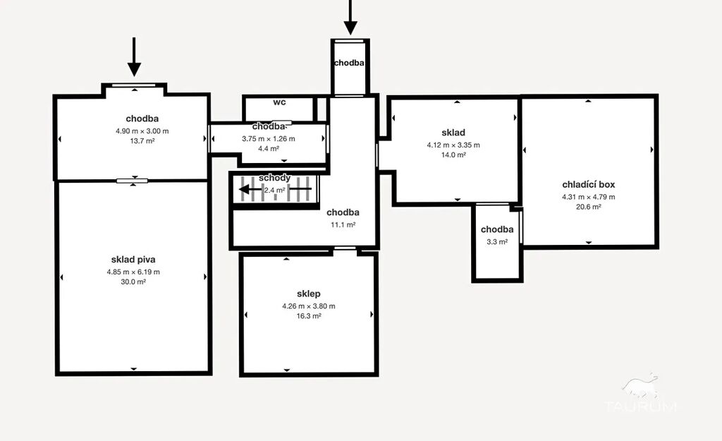 V přízemí je restaurace, výčep, hlavní sál, dva salónky, WC, nově přistavěná kuchyně a částečně i prostor pro výrobu a prezentaci piva.