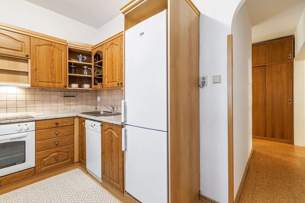 V bytovém domě s výtahem na Vás v 1.patře čeká opravdový domov a to včetně vybavení. Kuchyňská linka v příjemném designu dispozičně oddělená od ostatních pokojů. Ve vybavení nechybí lednička, myčka. Nabízí vše, co od praktické kuchyně očekáváte.