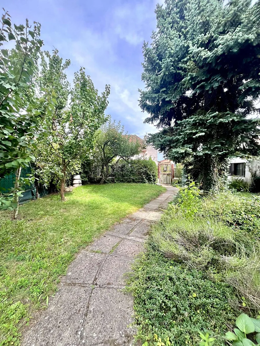 Celková plocha pozemku je 419 m2 z čehož je 51 m2 garáž s dílnou, samostatná zahrada je 272 m2 a dům je o výměře 96 m2. Nemovitost se nachází v klidné části starší zástavby a také v těsné blízkosti centra města. Tato okouzlující zahrada zaručí vzhledem ke vzrostlé zeleni spoustu soukromí a také několik zákoutí k posezení, protože dům samotný se nachází až v zadní části pozemku.