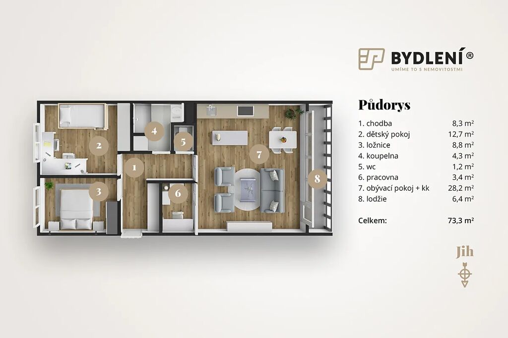 Realitní kancelář 3P Bydlení vám ve výhradním zastoupení majitele nabízí k prodeji exkluzivní byt v osobním vlastnictví o dispozici 3+kk+ lodžie a podlahové ploše 76,32 m², který prošel kompletní a velmi zdařilou rekonstrukcí. Při realizaci byly použity prvotřídní materiály a na žádném detailu se nešetřilo. Výsledkem je moderní, nadčasový a perfektně sladěný interiér, připravený k okamžitému užívání.