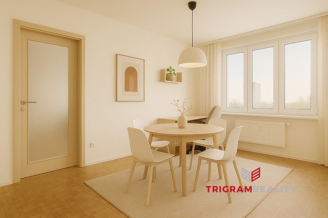 Díky své velkorysé rozloze a dispozici lze byt snadno upravit i na komfortní 3+kk.