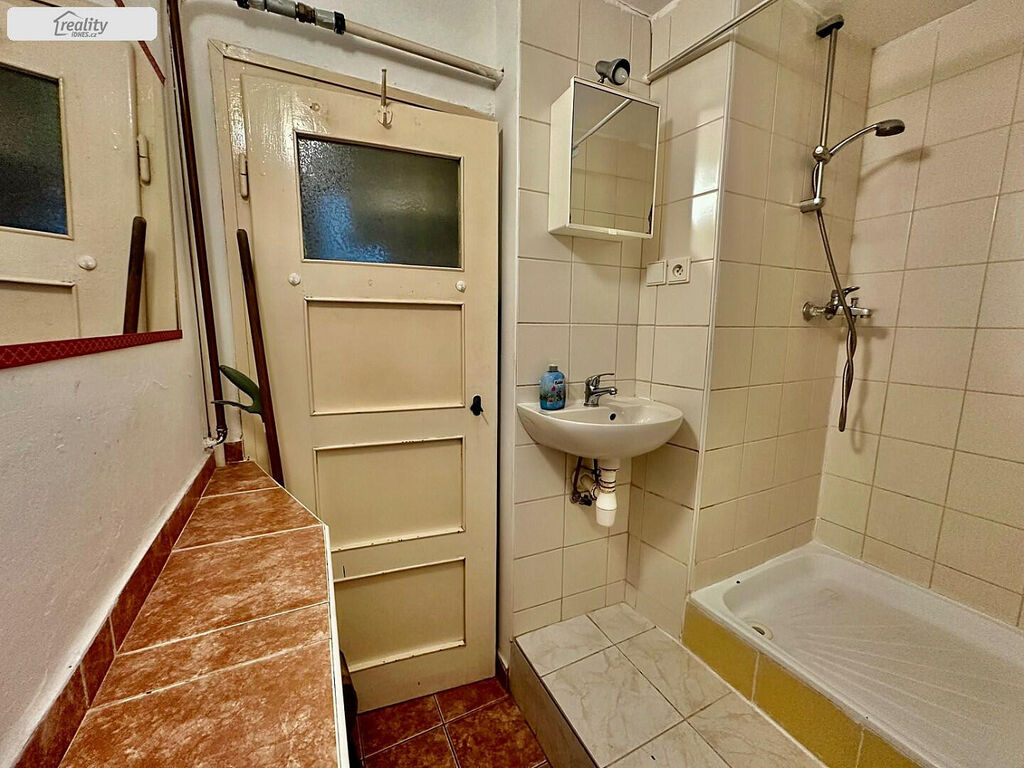 V koupelně sprchový kout, dlažba, WC samostatně.