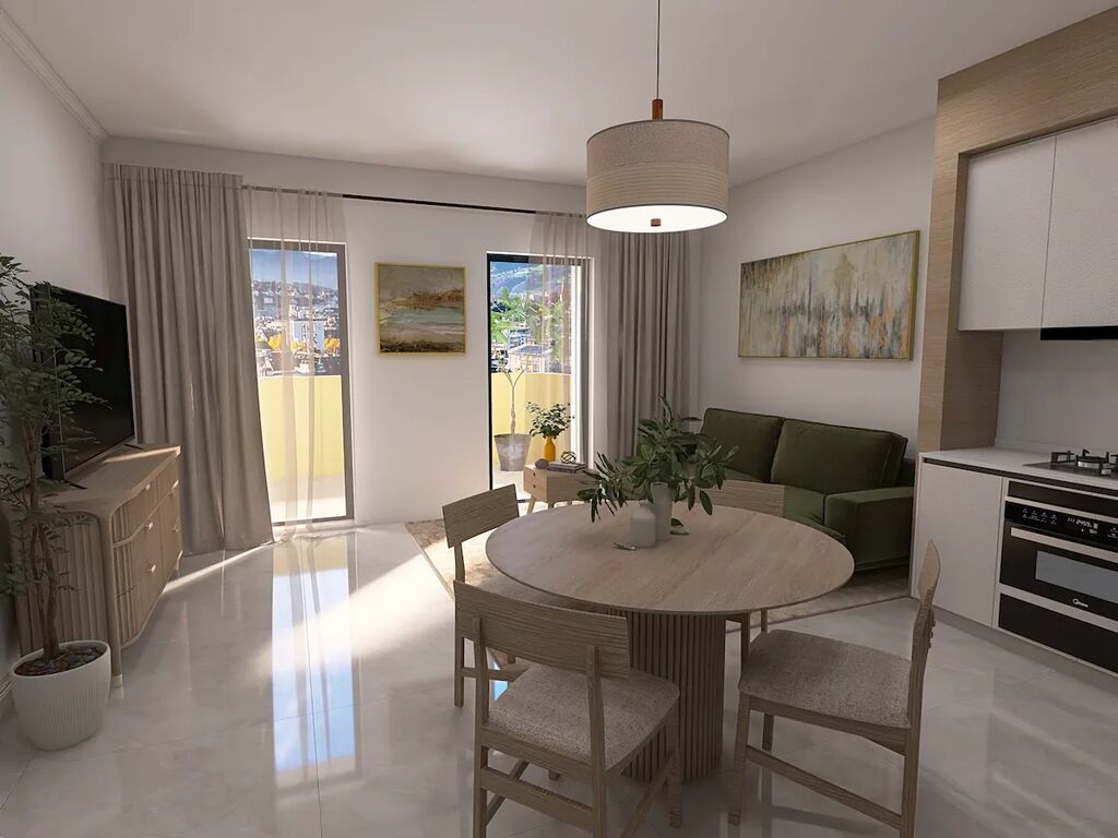 zděná/železobetonová konstrukce, okna s trojskly a příprava pro venkovní stínění, ústřední vytápění z domovní kotelny, v bytě podlahové topení a žebřík v koupelně. Dispozice nabízí obývací prostor s přípravou na kuchyňskou linku, dvě ložnice, koupelnu a samostatné WC; standard zahrnuje plovoucí podlahy v obytných místnostech, keramickou dlažbu a obklady v koupelně a na WC, interiérové dveře s obložkami, bezpečnostní vstupní dveře, datové rozvody a videotelefon.