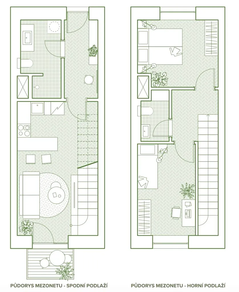 Nabízíme mezonetový byt 3+kk o užitné ploše 66 m² ve 4.–5. nadzemním podlaží (byt A19) s balkonem 3 m² v rámci 3. etapy projektu Zelená Fabrika ve Šternberku.