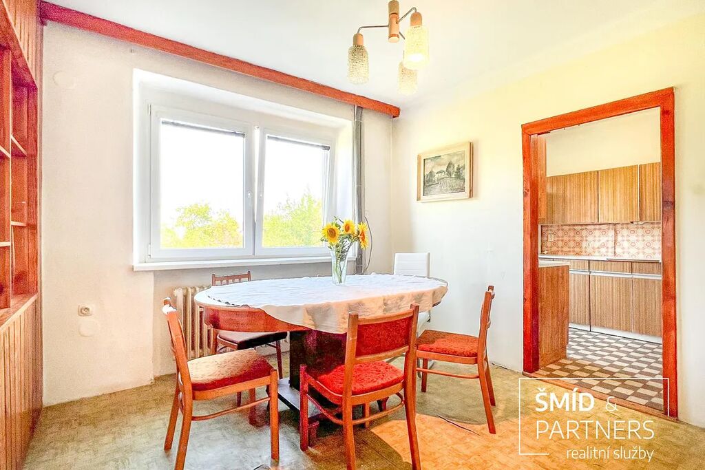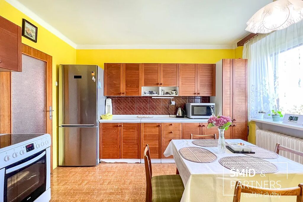Dům nabízí dvě samostatné bytové jednotky, každou o dispozici 4+1, jednu v přízemí a druhou v patře. Dále je zde prostorný sklep o velikosti přibližně 100 m2, jehož součástí je i garáž.