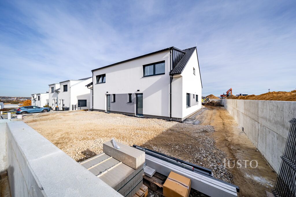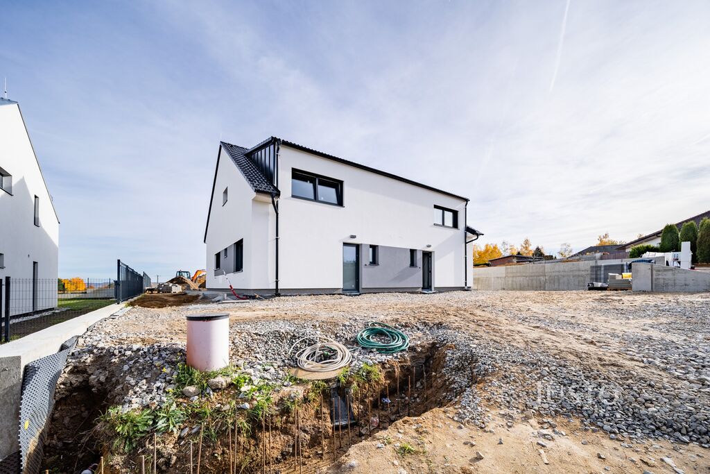 Dispozice 5+kk s užitnou plochou 121 m² nabízí velkorysý prostor, který si zamilujete hned při první prohlídce. Součástí každé jednotky je navíc vlastní zahrada o výměře cca 285 m², dvě parkovací stání, terasa, vlastní tepelné čerpadlo značky Panasonic, nezámrzný venkovní kohout na vodu, příprava na venkovní žaluzie (bez lamel), hotový plot a mnoho dalšího. Zahrada bude předána srovnaná a s navezenou ornicí, připravená k osetí trávníkem. Praktickým benefitem je také dostatečně široký přístup na pozemek kolem jednotky, včetně hotového chodníku.