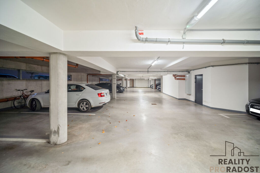 K bytu náleží také sklepní kóje, venkovní parkovací stání přímo před domem a garážové parkovací stání v suterénu objektu – velká výhoda zejména v zimních měsících.