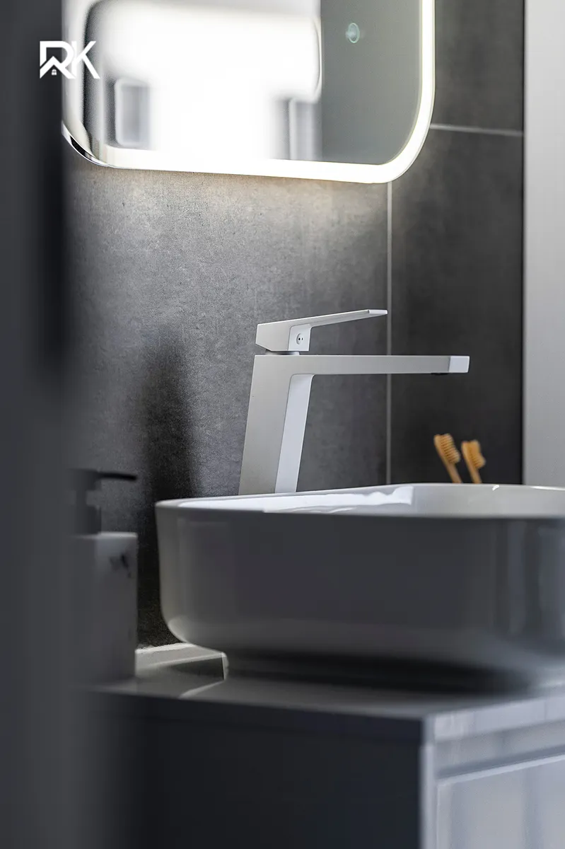 Dispozice domu je promyšlená do detailu. V přízemí se nachází vstupní předsíň, technická místnost, samostatné WC a prostorný obývací pokoj s kuchyňským koutem. V patře je velkorysá chodba, ložnice, dětský pokoj, druhá technická část s pračkou a sušičkou a prostorná koupelna s volně stojící vanou, velkoformátovou dlažbou a vybavením v hodnotě 250 000 Kč. Dům lze jednoduše upravit na dispozici 4+kk zrušením prádelny.