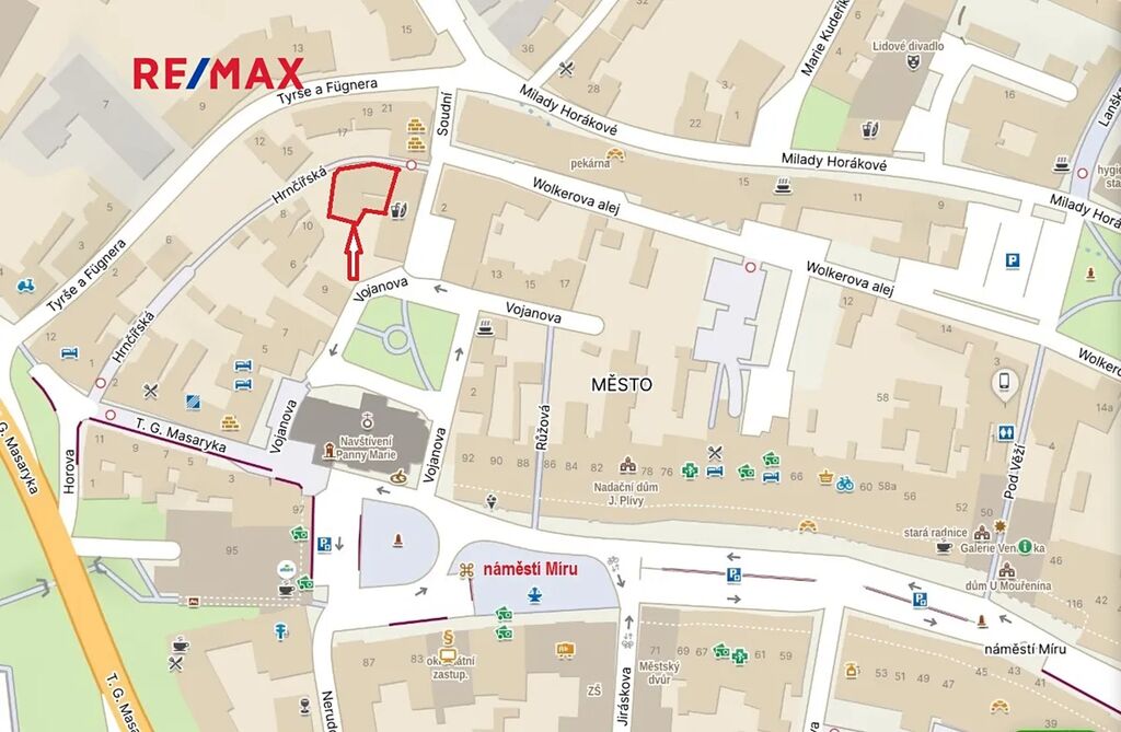 Výhoda objektu je umístnění přímo v centru města těsně pod náměstím.