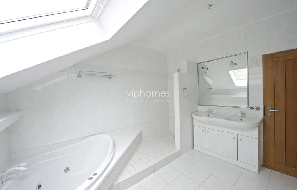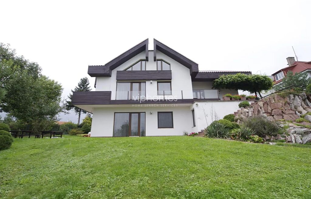 Klimatizace, parkety a dlažba, vestavěné skříně, úložné prostory, pračka/sušička, masážní vana, satelitní připojení, bezpečnostní dveře, alarm. Grilovací terasa na zahradě k dispozici. Garáž a bezpečné parkování na pozemku. Nájem: 55 000 CZK / měsíc. Zálohové platby na energie a služby 12.000 Kč/měsíc.