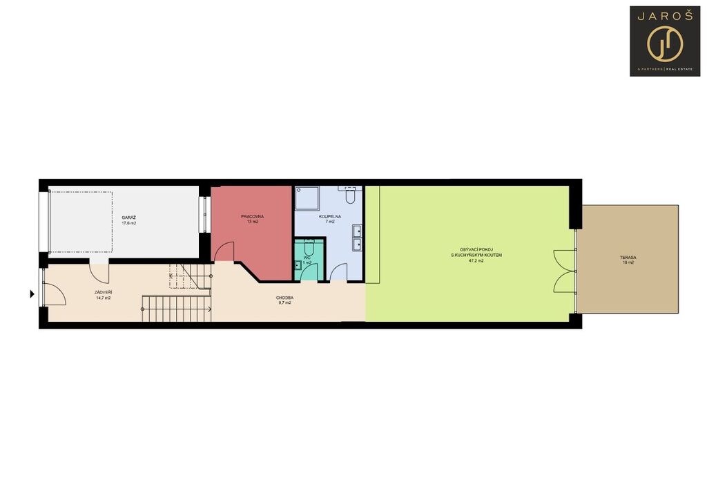 Nabízíme vám k prodeji moderní řadový rodinný dům o dispozici 5+kk s celkovou plochou 243 m² v projektu Rezidence Park Svitavy. Dům nabízí prostorný obývací pokoj s kuchyňským koutem, který přímo navazuje na terasu a zahradu směrem do parku. V přízemí se dále nachází koupelna, pracovna a zádveří. Mezipatro nabízí vstup na terasu směrem do ulice. V patře jsou čtyři samostatné pokoje, koupelna a balkon s příjemným výhledem do zeleně, přístupný z obou pokojů. Součástí je také garáž přístupná ze vstupní chodby a dvě parkovací stání přímo před domem.